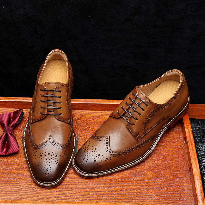 📚 Brogue Carved Men's Dress Shoes Leather Business Derby Shoes