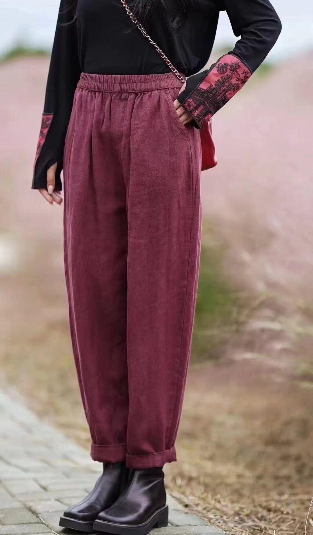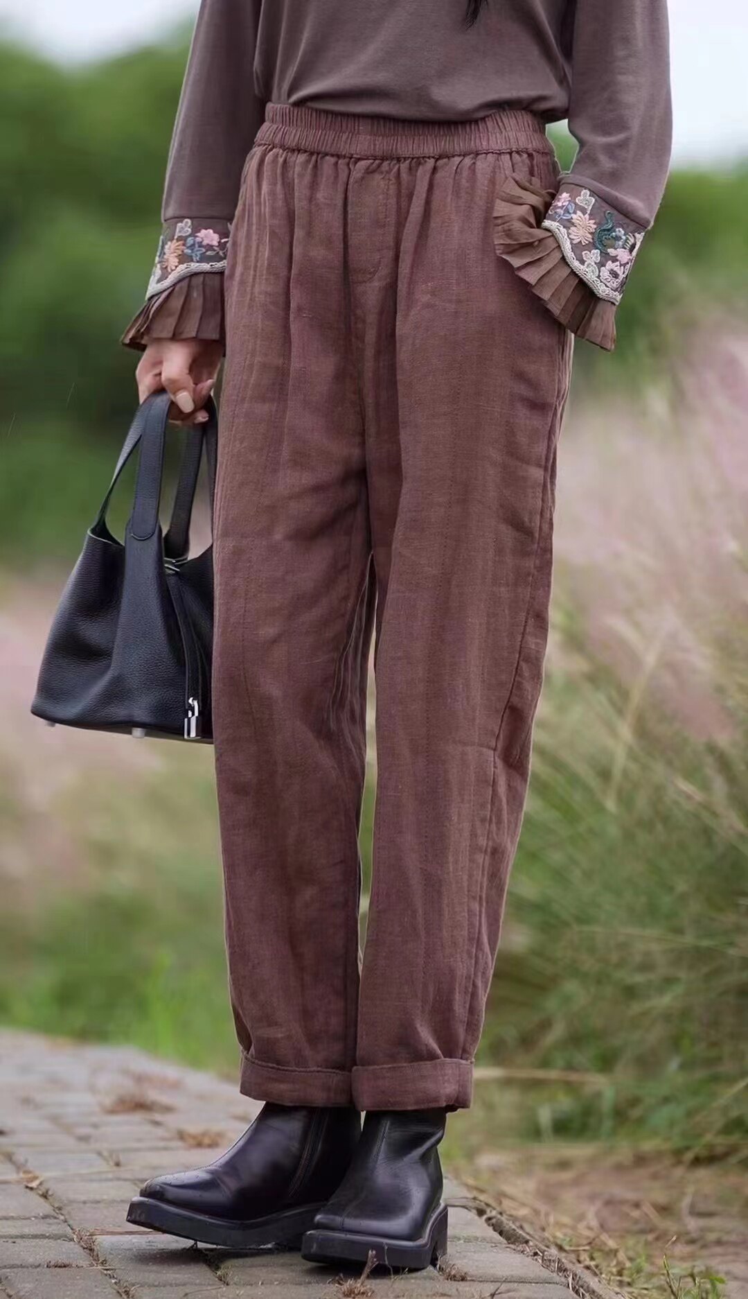 📚 18260小莲~精细纯亚麻休闲裤百搭全棉内里双层手工压线小脚哈伦裤