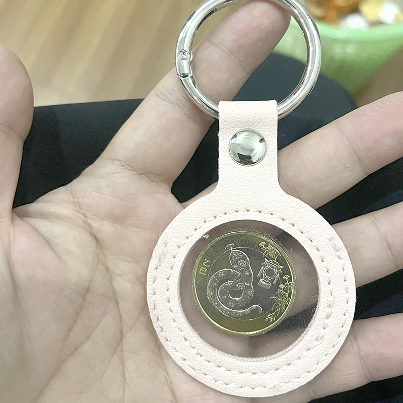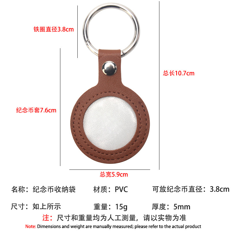 📚 皮革金属纪念币收纳袋可挂包包钥匙扣钱币收纳单枚套金币银币挂件透明保护袋