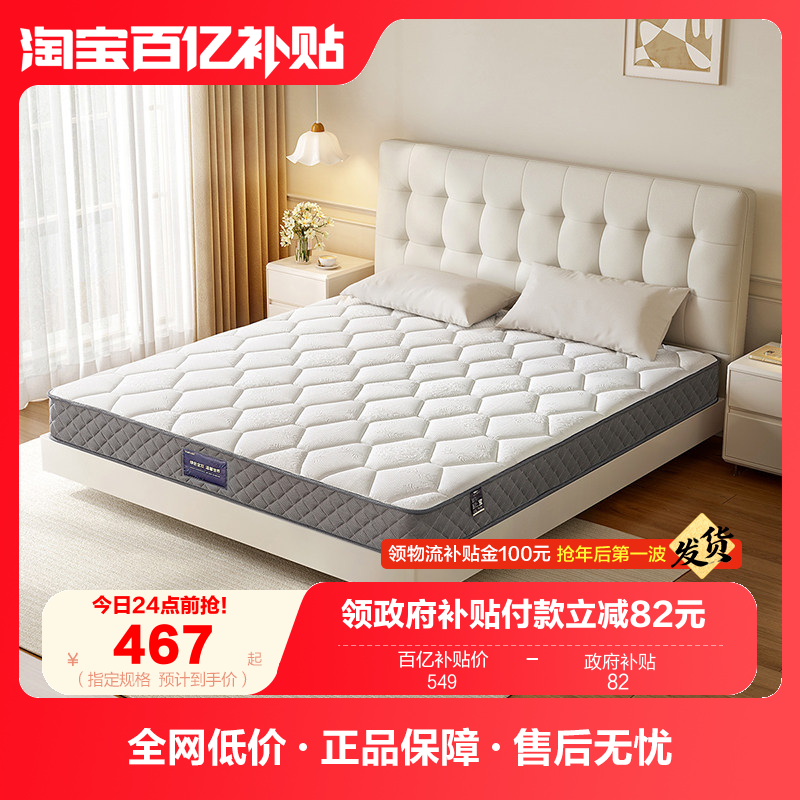 📚 全友家居席梦思1米5单人弹簧乳胶床垫卧室家庭用180x200椰棕硬垫