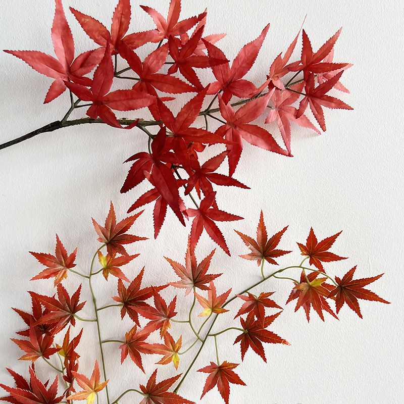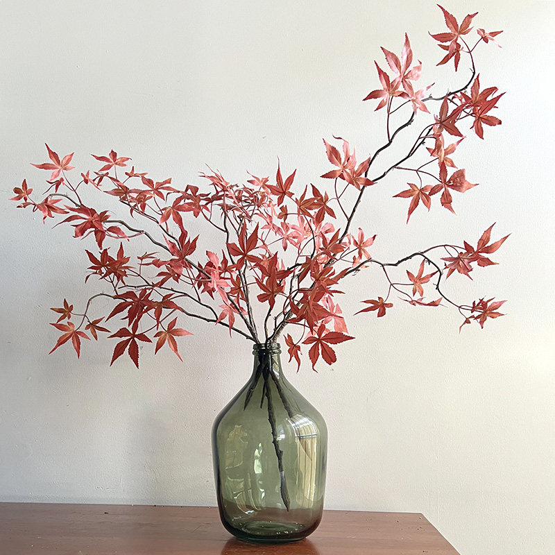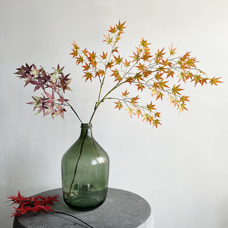 📚 仿真假绿红色单枝鸡爪槭日本红枫叶盆景绿植物树叶景装饰花艺