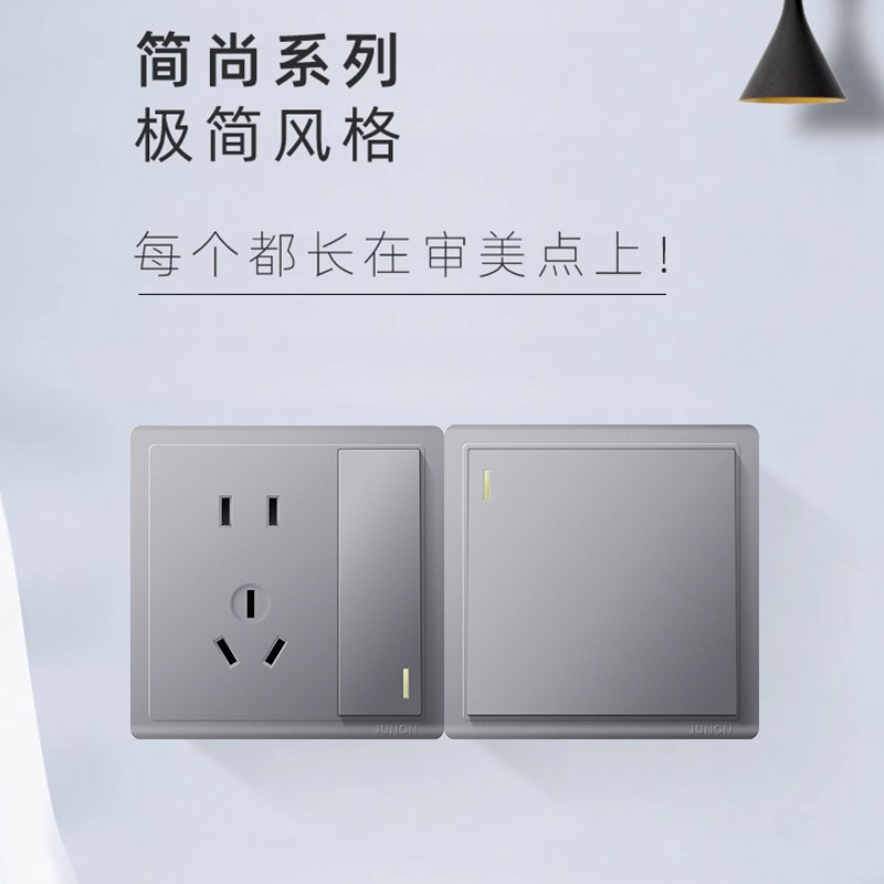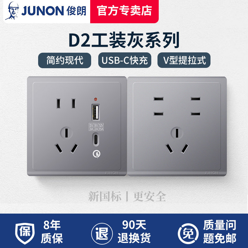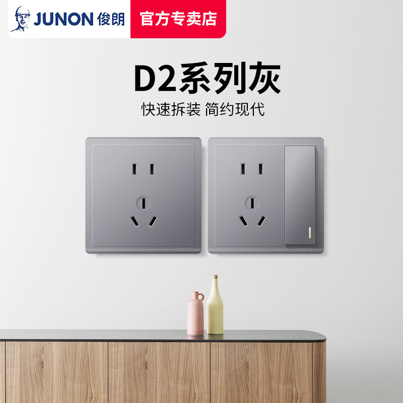 📚 俊朗junon插座开关D2灰色家用暗装86型五孔面板空调七孔多孔快充
