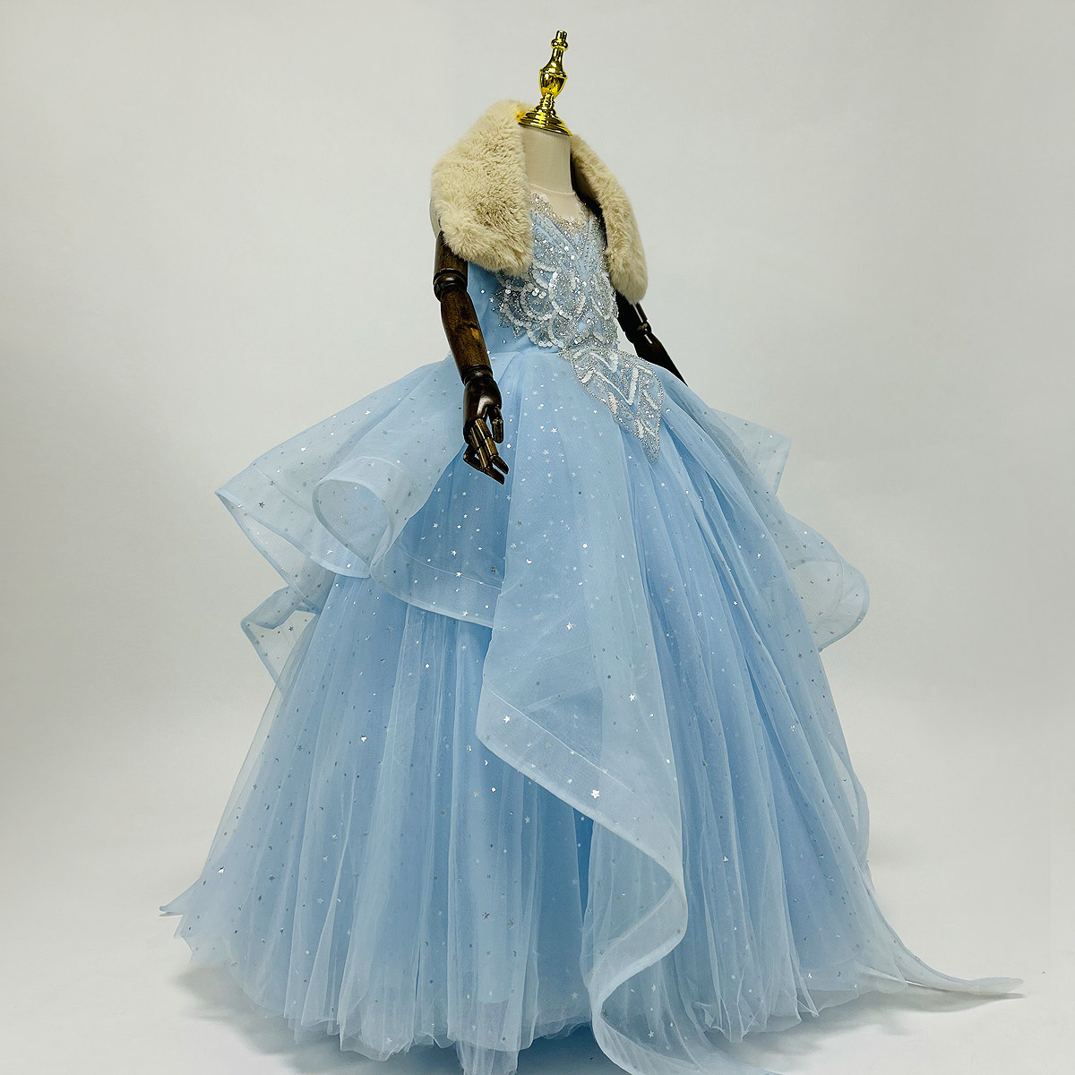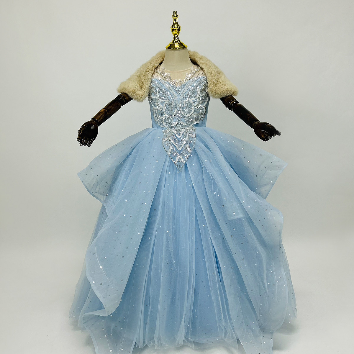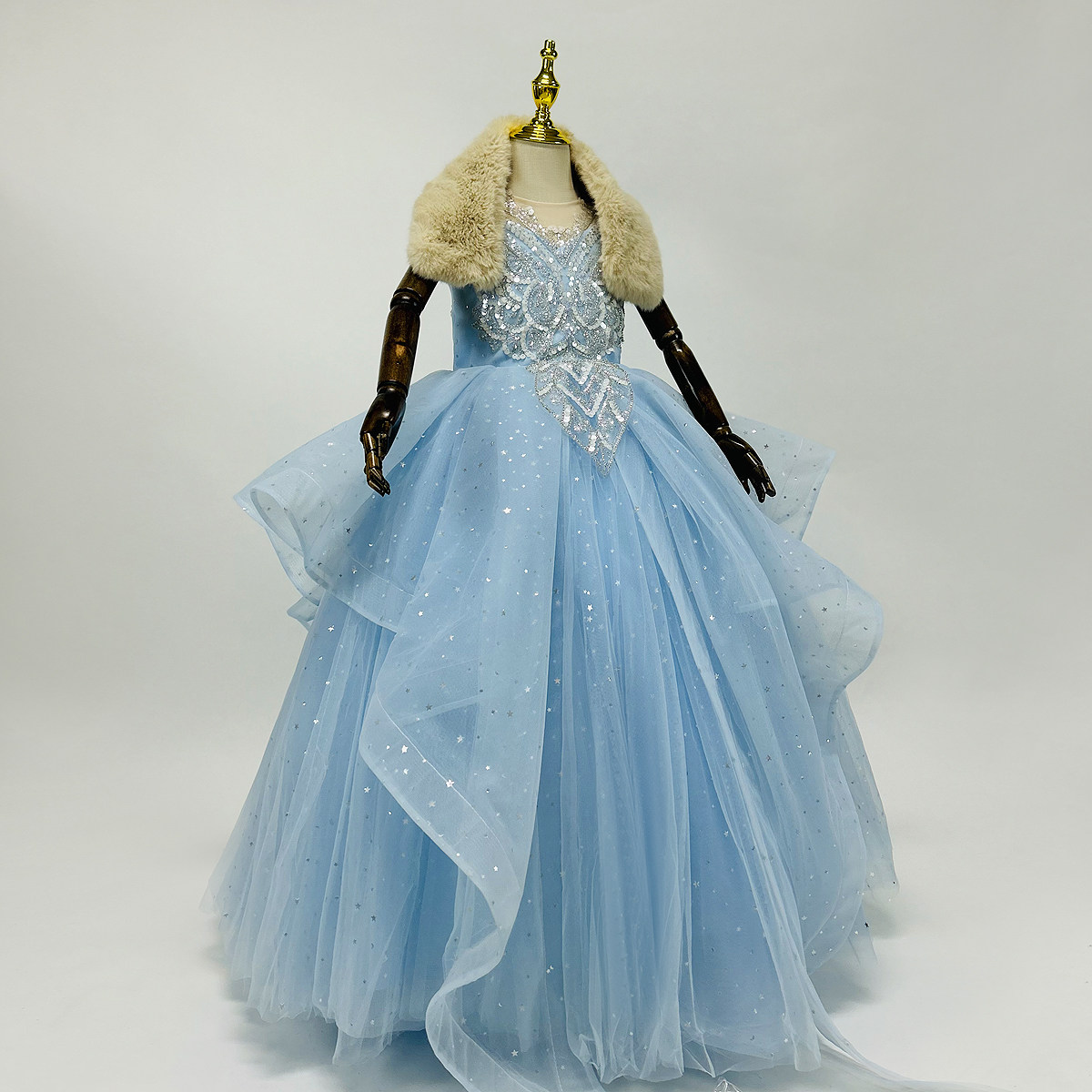 📚 租赁儿童演出服装女童主持节目弹钢琴大方端庄大气礼服裙出租蓝色