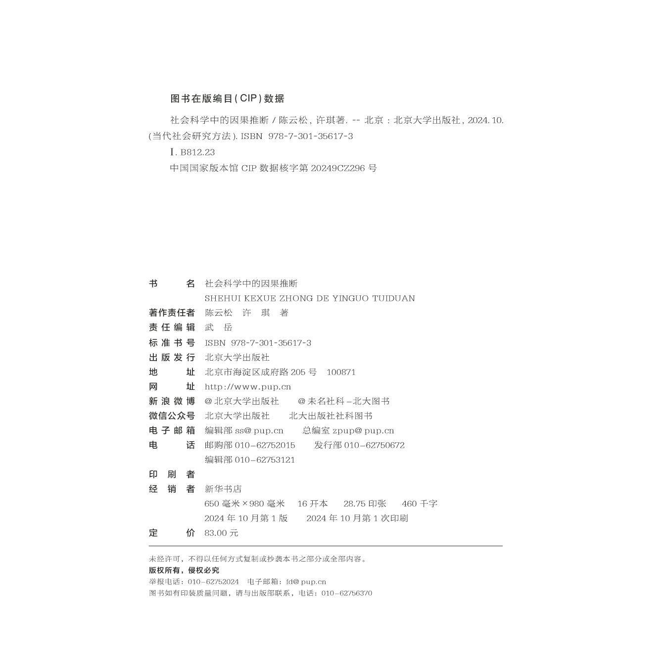 📚 社会科学中的因果推断 当代社会研究方法 陈云松 许琪 北京大学出版社 9787301356173