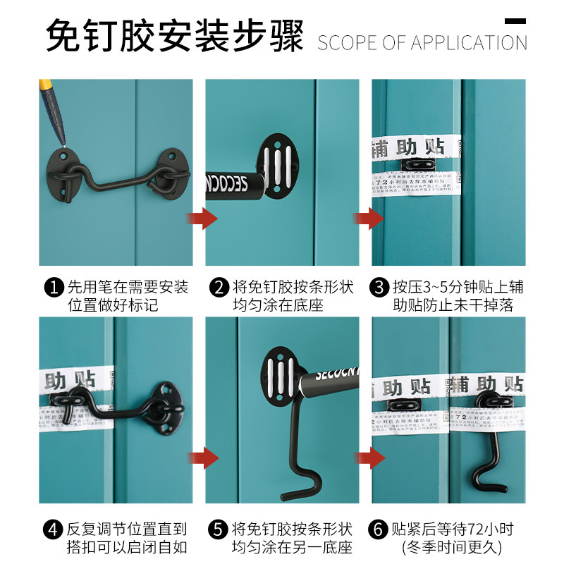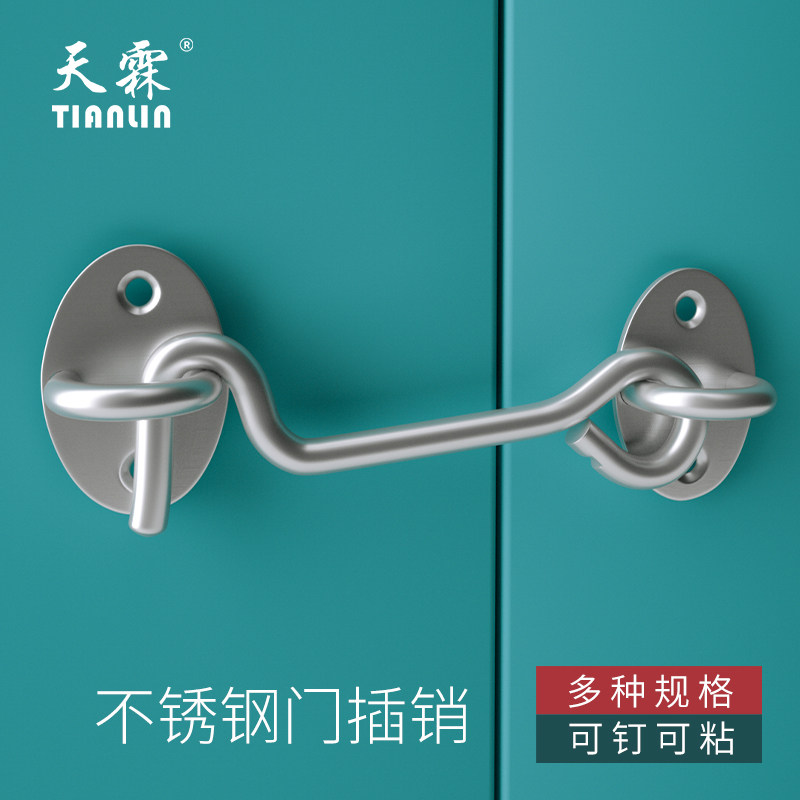📚 免打孔插销门扣门栓不锈钢卫生间木门闩挂钩老式房门锁简易门拴钩
