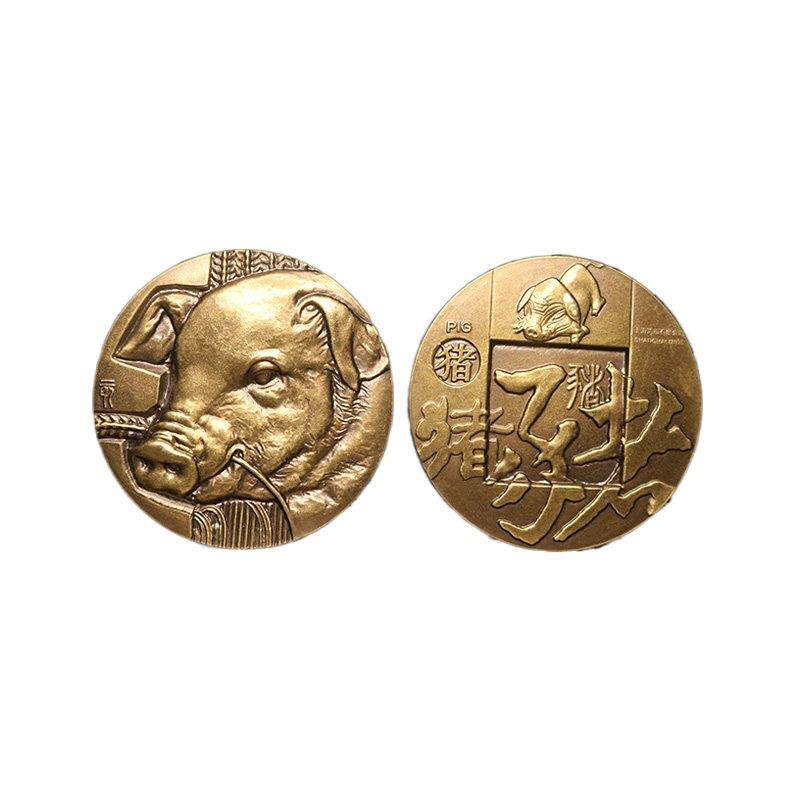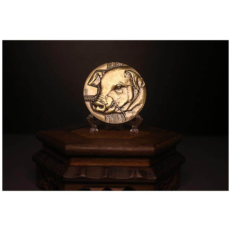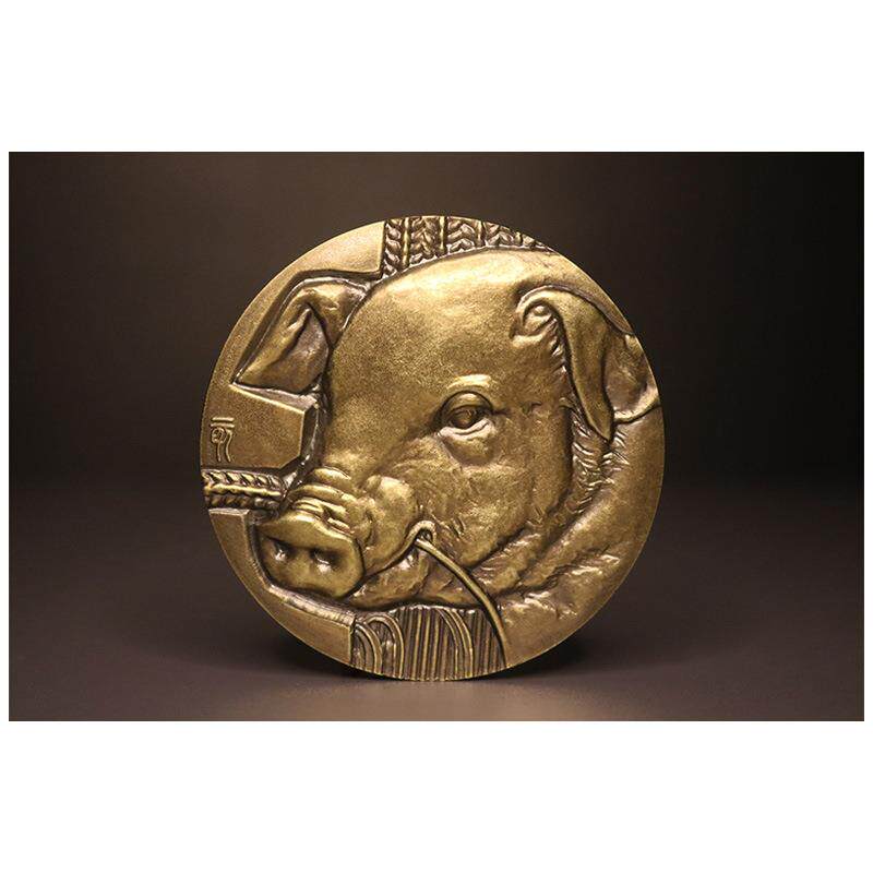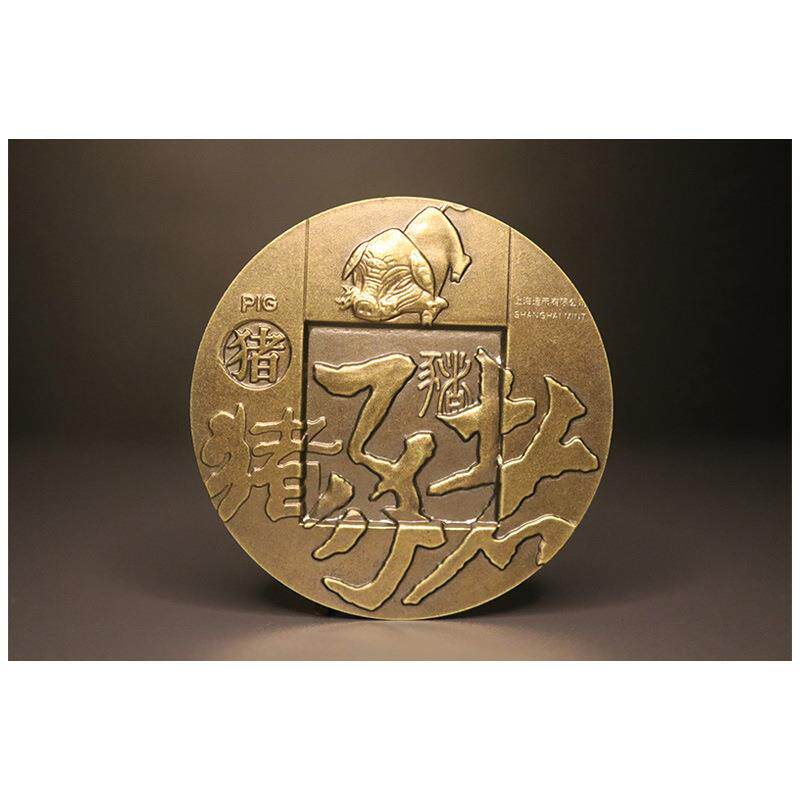 📚 上海造币厂 十二生肖纪念章 罗永辉 高浮雕工艺 60mm 猪年大铜章