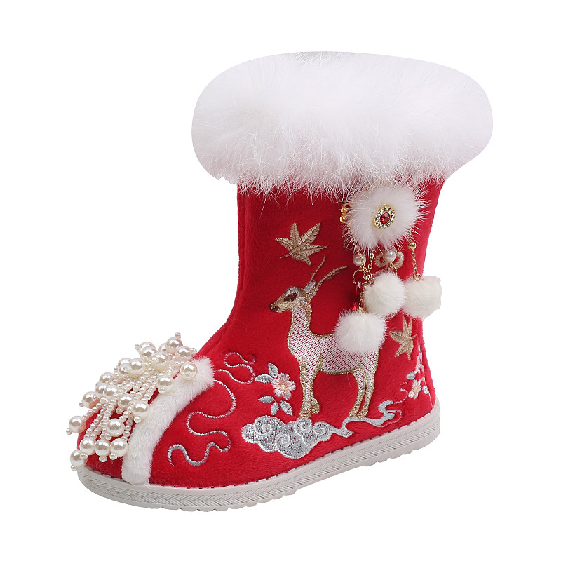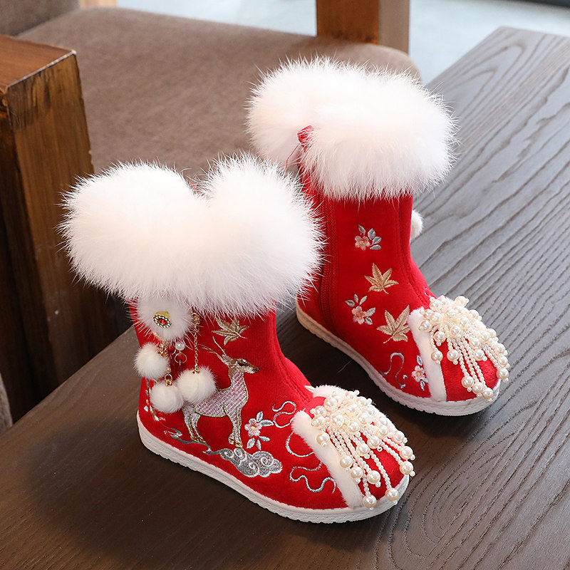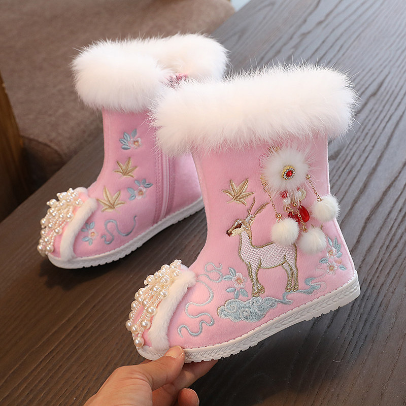 📚 国风汉服鞋女童加绒汉服棉鞋冬季儿童绣花鞋古风鞋子宝宝大棉靴子