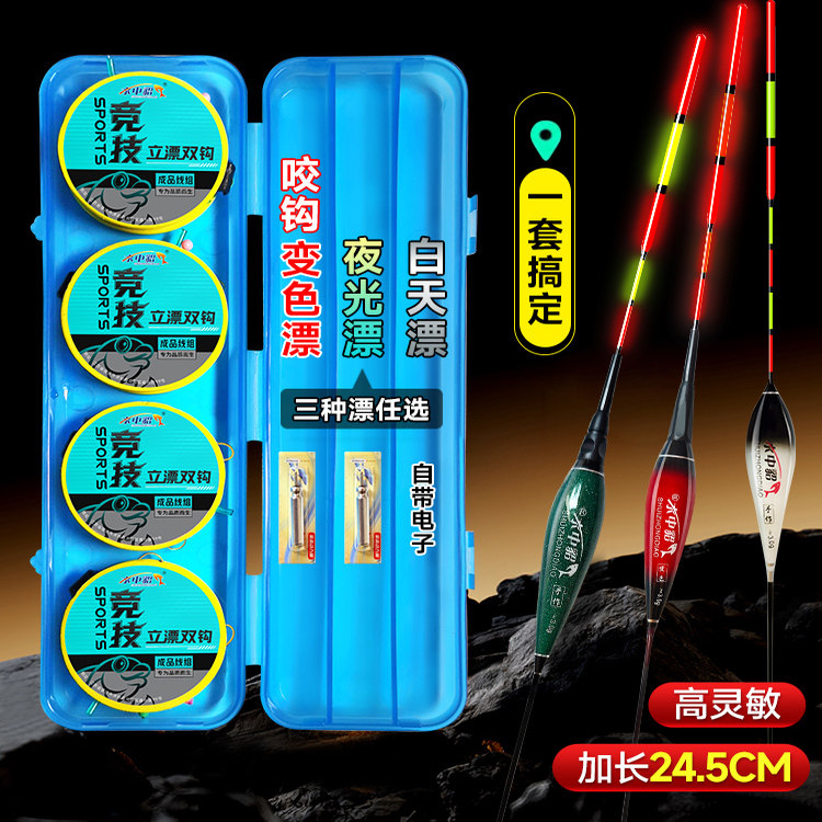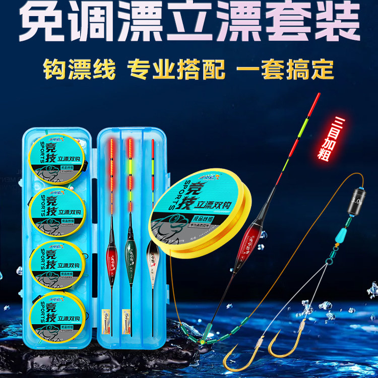 📚 水中貂免调漂立漂双钩线组手工精绑成品竞技主线高灵敏浮漂套装