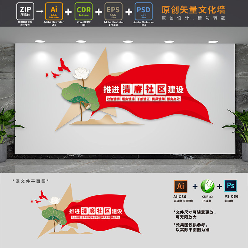 📚 廉洁文化进社区创建清廉社区建设街道办廉政文化墙AI+CDR+PSD素材