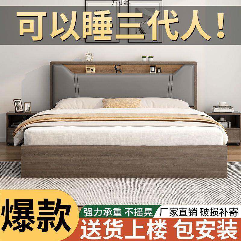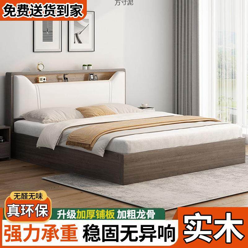 📚 实木床双人1.x2米1主现代简约家用1.5米YUX小户型出租8房.2卧m单