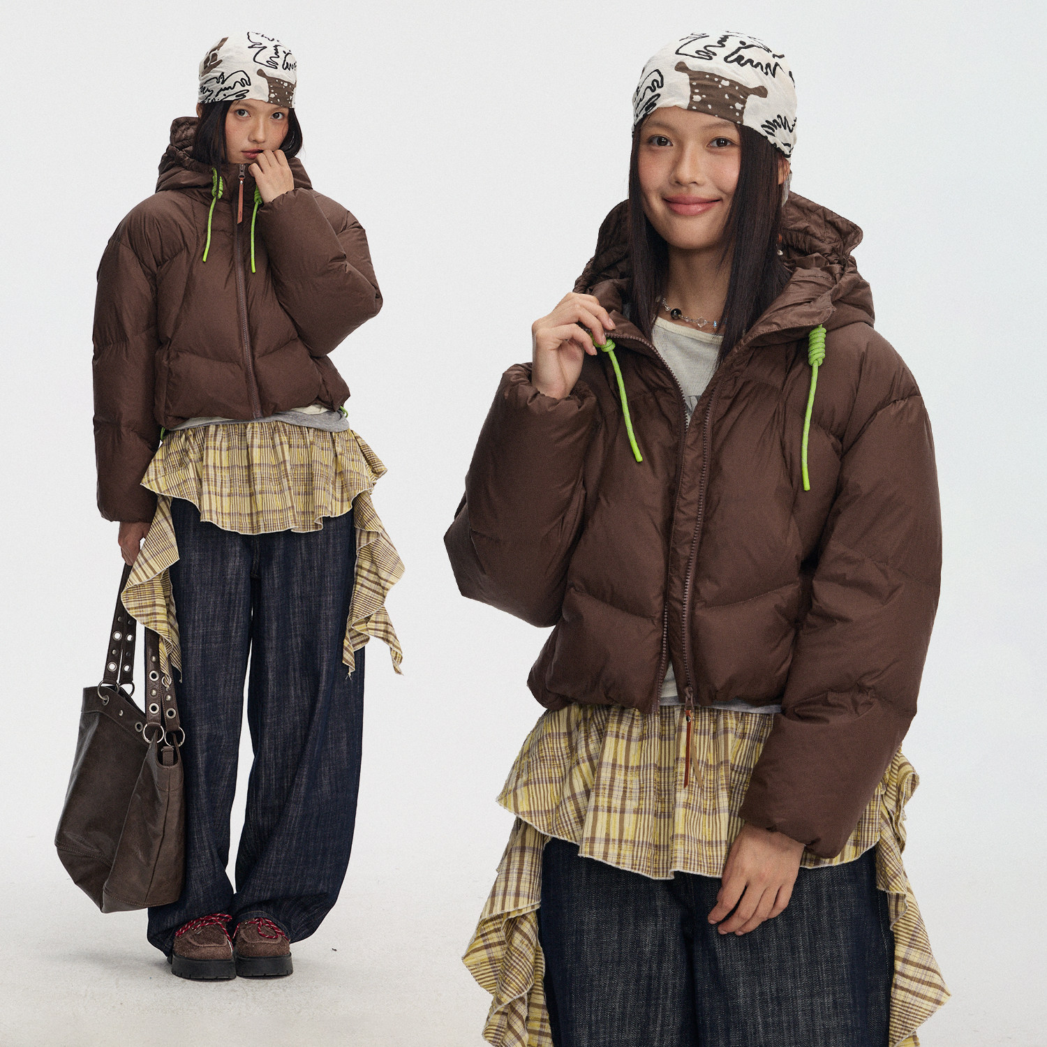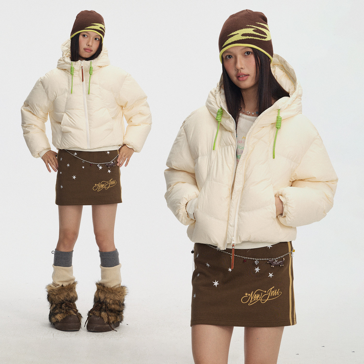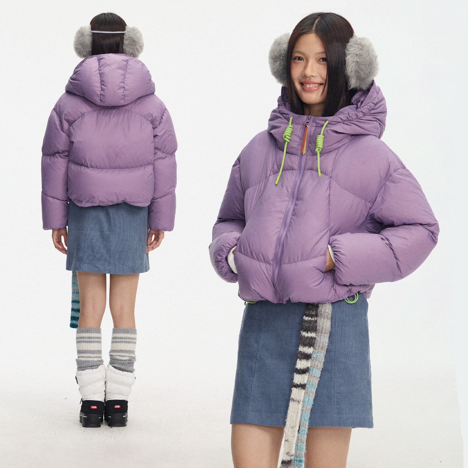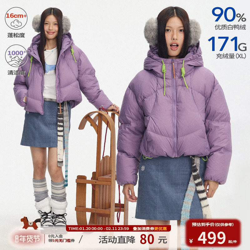 📚 江南先生NewJNXS哑光雾面撞色反光抽绳保暖轻便连帽羽绒服短款冬