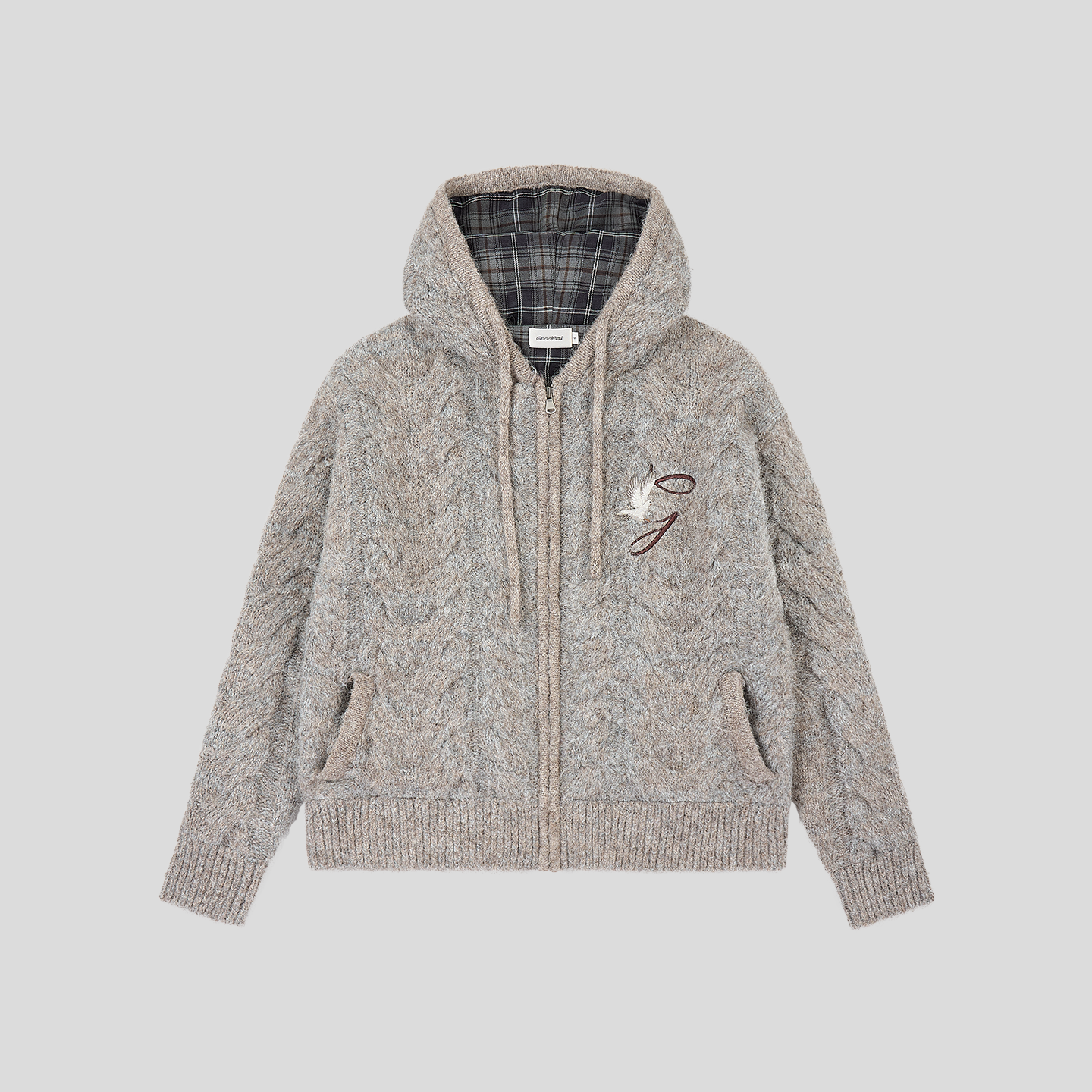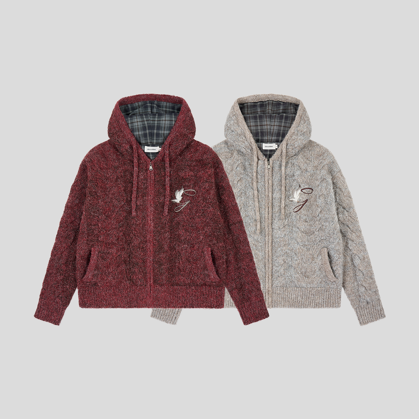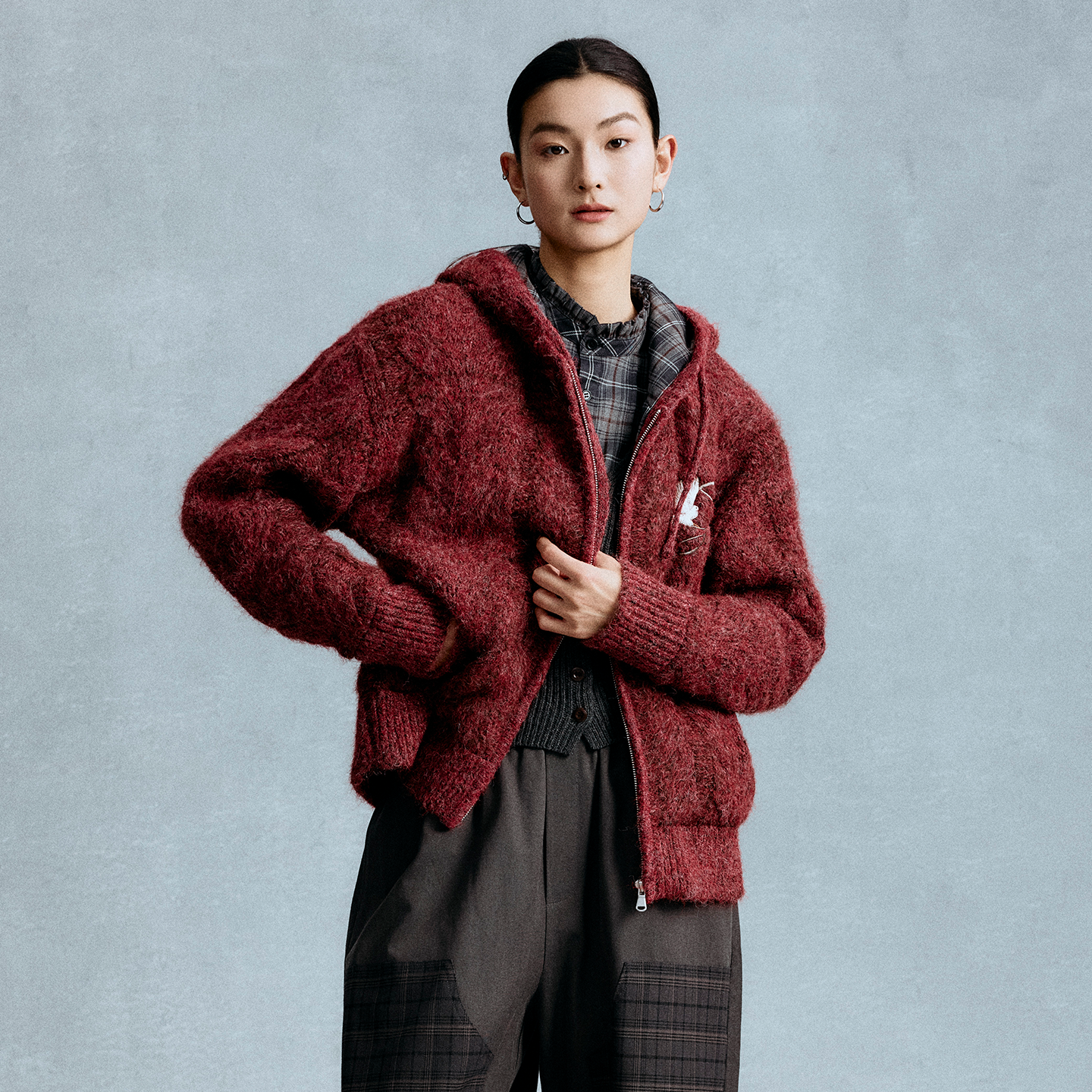 📚 GOODBAI 冬季新款格纹拼接扭花连帽保暖毛衣外套