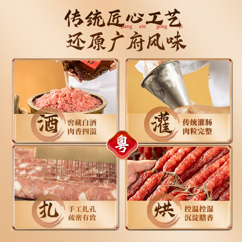 📚 珠江桥牌喜粤四宝腊味礼盒500g广式甜肠鸭腊肠腊肉煲仔饭送礼