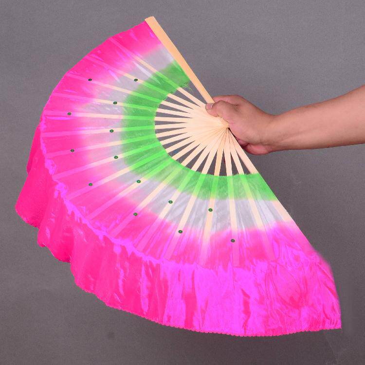 📚 广场舞扇子左右手表演一对舞蹈扇双面绸布跳舞扇秧歌扇子