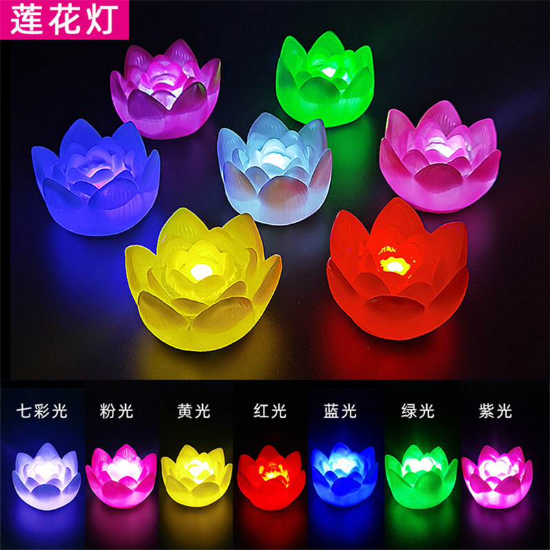 📚 七彩莲花发光小夜灯荷花灯祈祷观音供佛法事道具许愿法会电子蜡烛