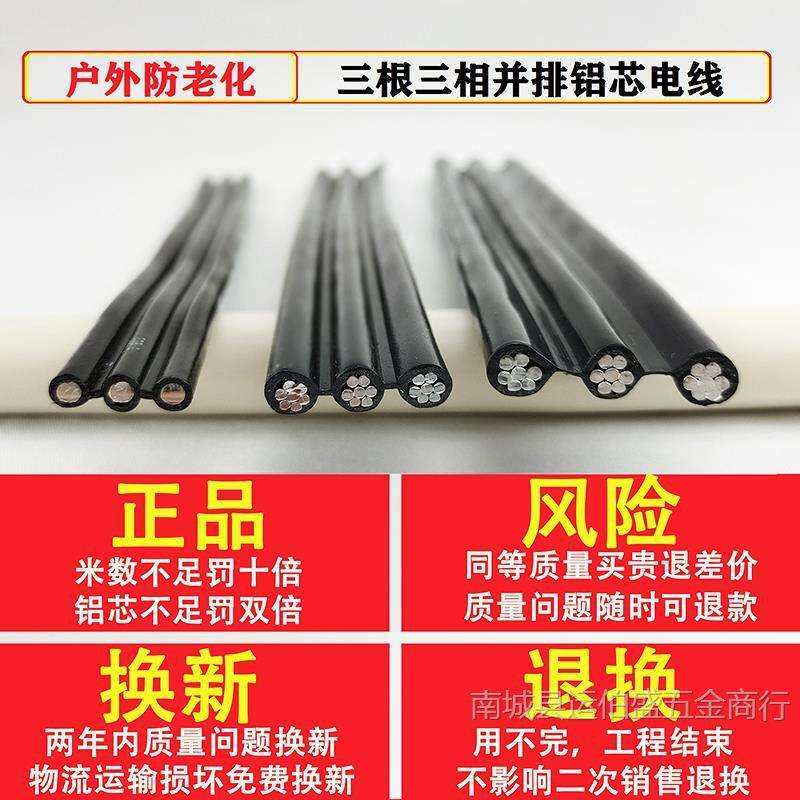 📚 国标3芯防老化铝线6 10 16平方三相铝芯电缆户外三芯集束平行电线
