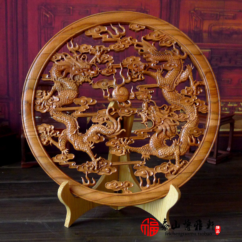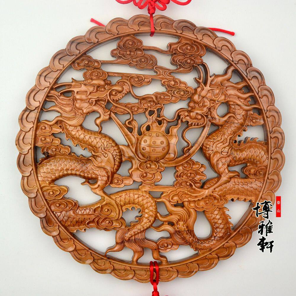 📚 桃木二龙戏珠双龙镇木雕挂件摆件新居饰品礼品