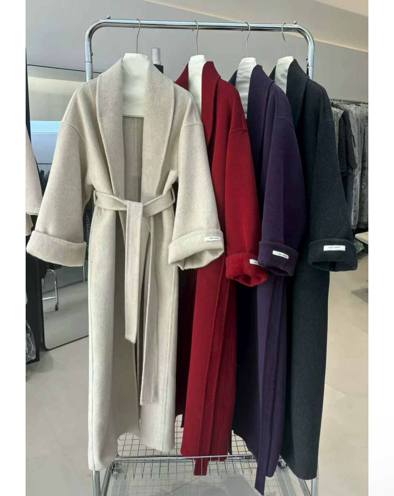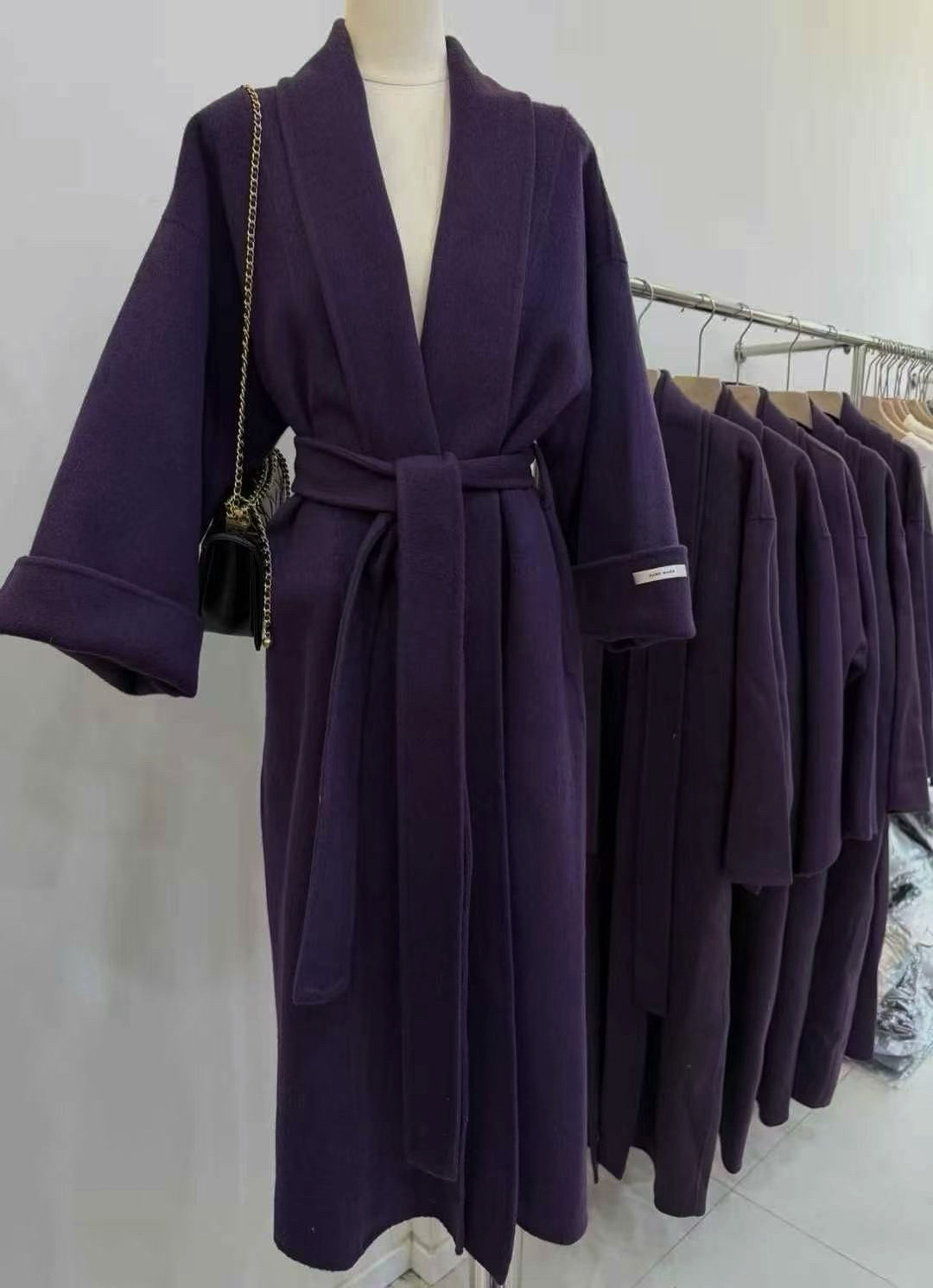 #冬季新品 #紫色双面羊毛大衣 #高端浴袍款 #气质羊毛呢外套 #优惠购入
