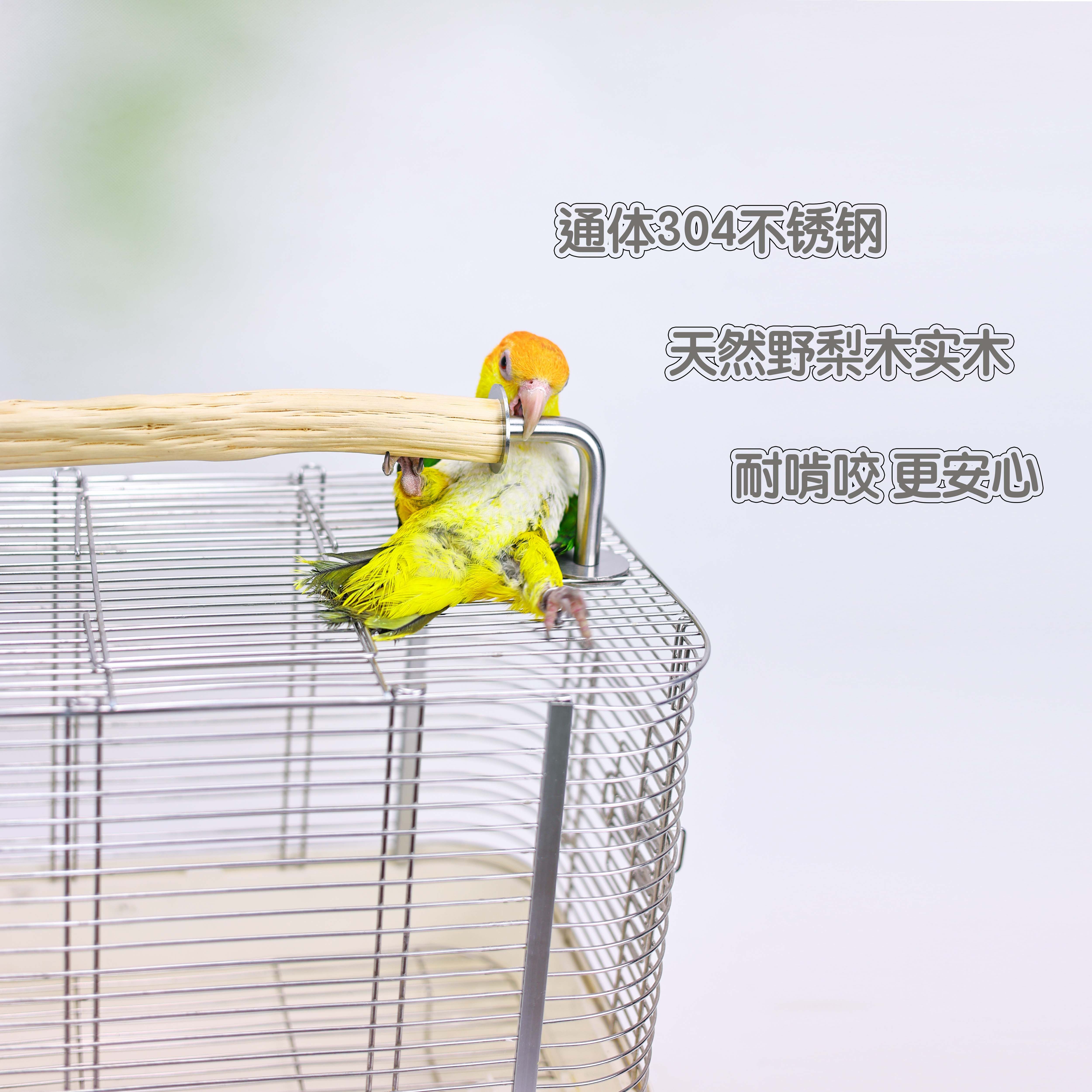 📚 洪屿鹦鹉鸟笼提手野梨木把手实木不锈钢鸟笼提手宠物外带外出站杆