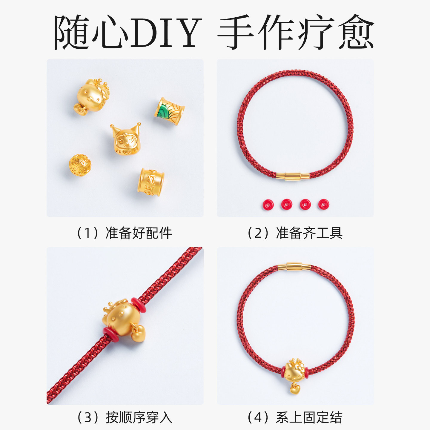 📚 本命年红绳手链编织绳可穿黄金转运珠diy编绳钢丝绳编织手绳防水