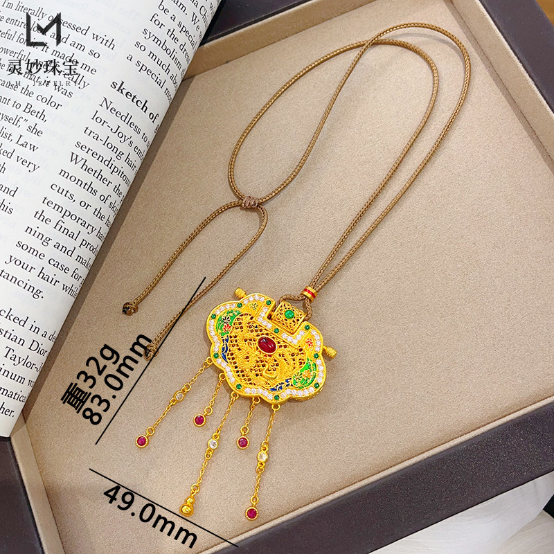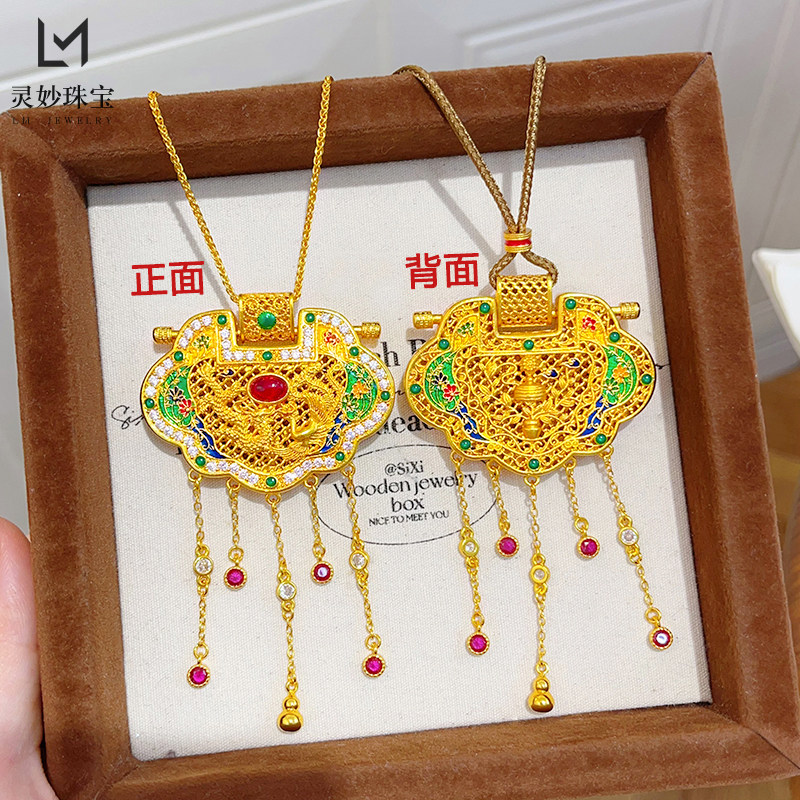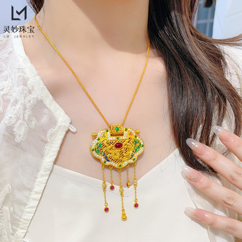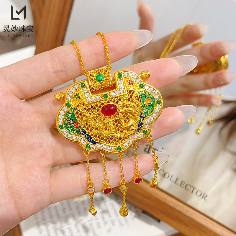 📚 金店同款沙金珐琅彩天子门生锁包吊坠龙凤呈祥流苏项链国风送女友