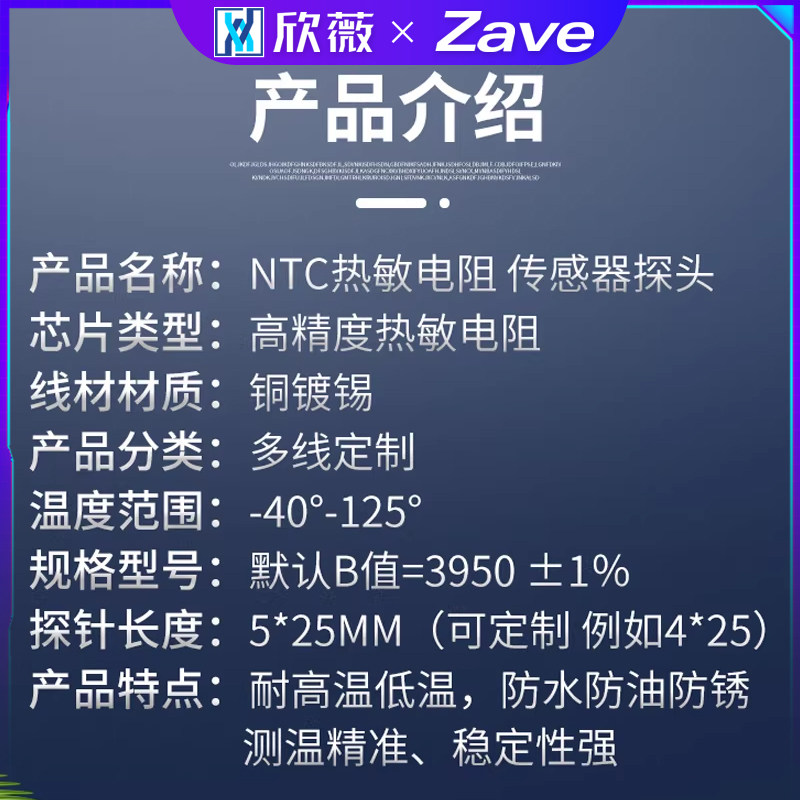 📚 NTC热敏电阻防水5K10K100K空调空气能太阳能热水器探头温度传感器