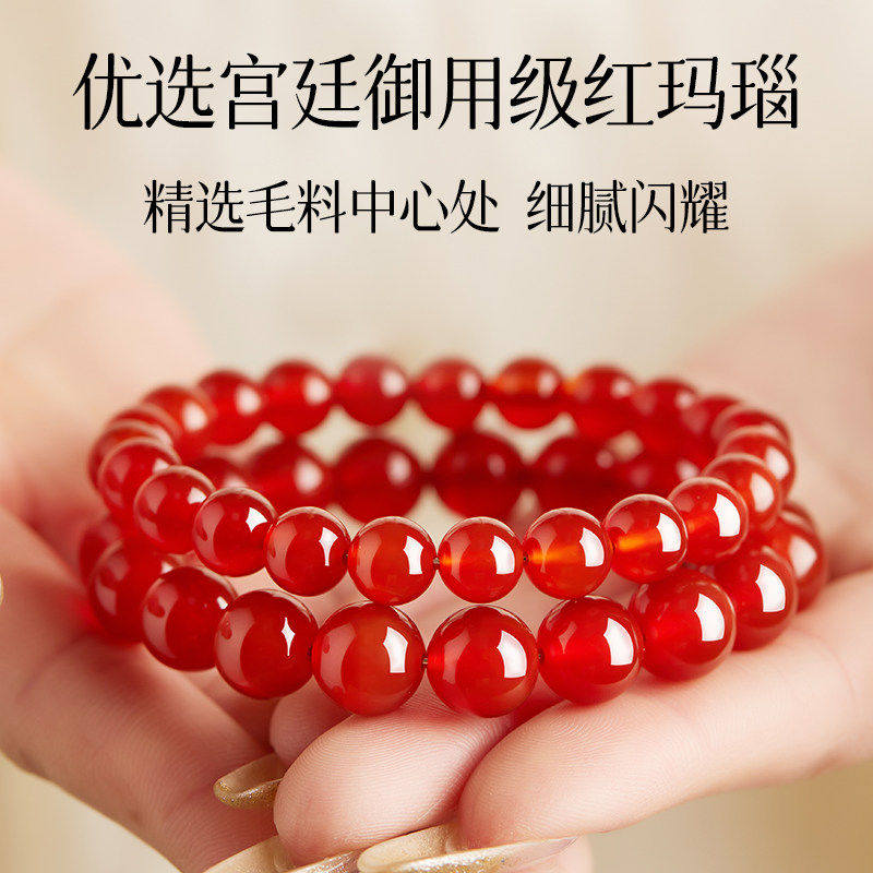 📚 五行缺补水火金木土手串红玛瑙黄水晶草莓晶绿檀木手串本命年饰品