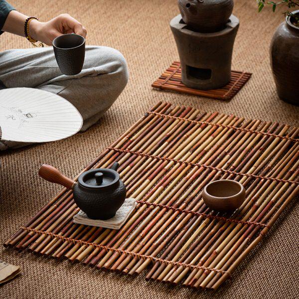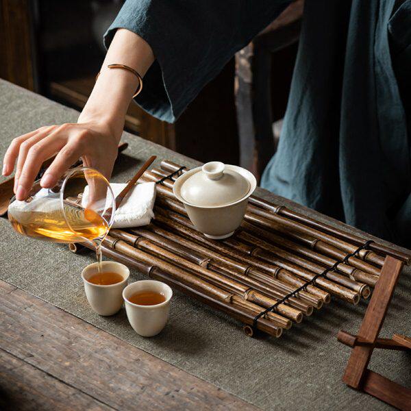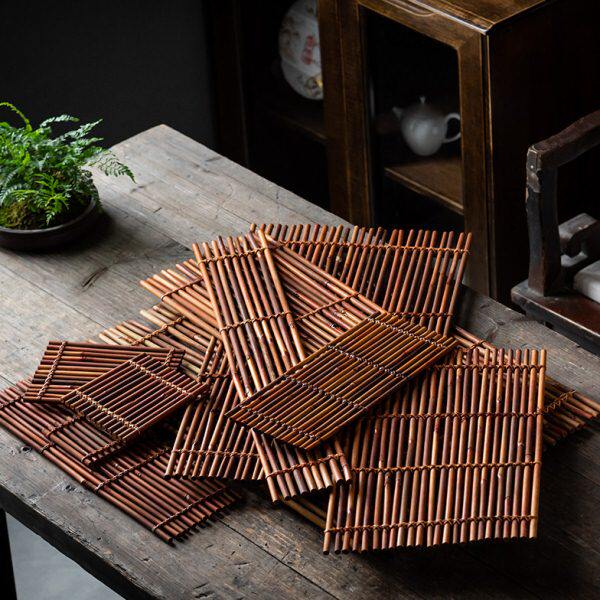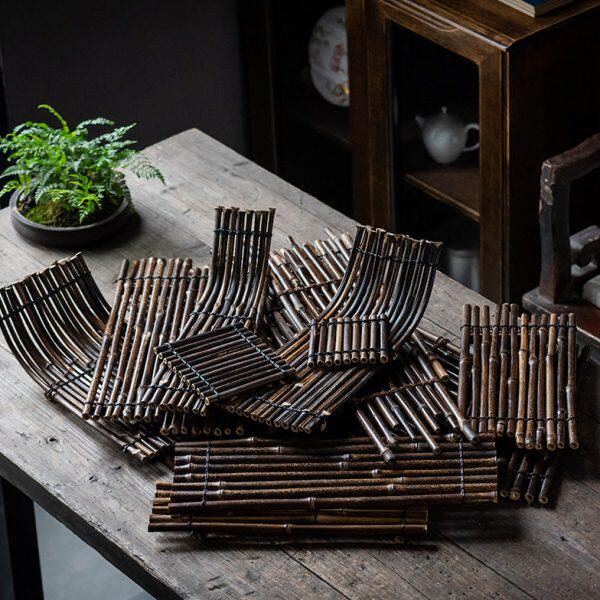 📚 竹排垫流水摆件手工竹编隔热垫干泡台摆盘茶桌茶盘茶杯垫杯托壶承