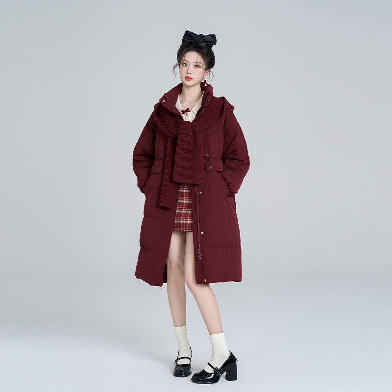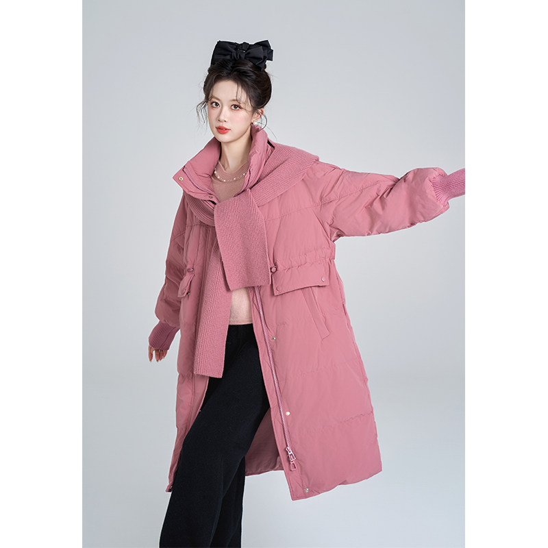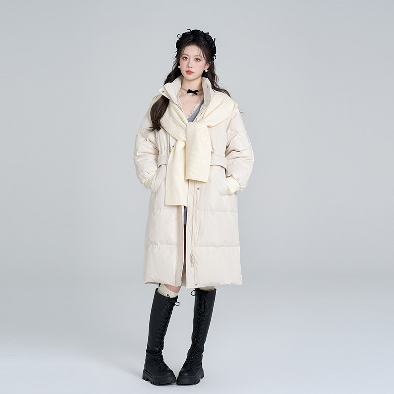 📚 过膝长款白鸭绒羽绒服女士冬装抽绳收腰韩系加厚今年流行爆款外套