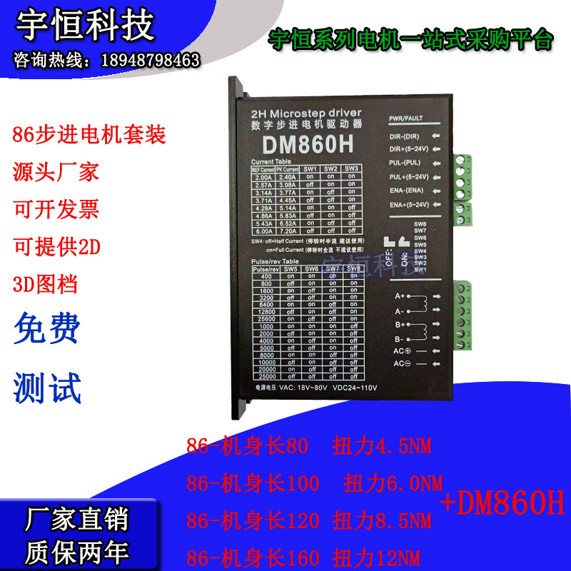 📚 86步进电机套装大扭矩12NM配DM860H驱动器两相混合电机马达