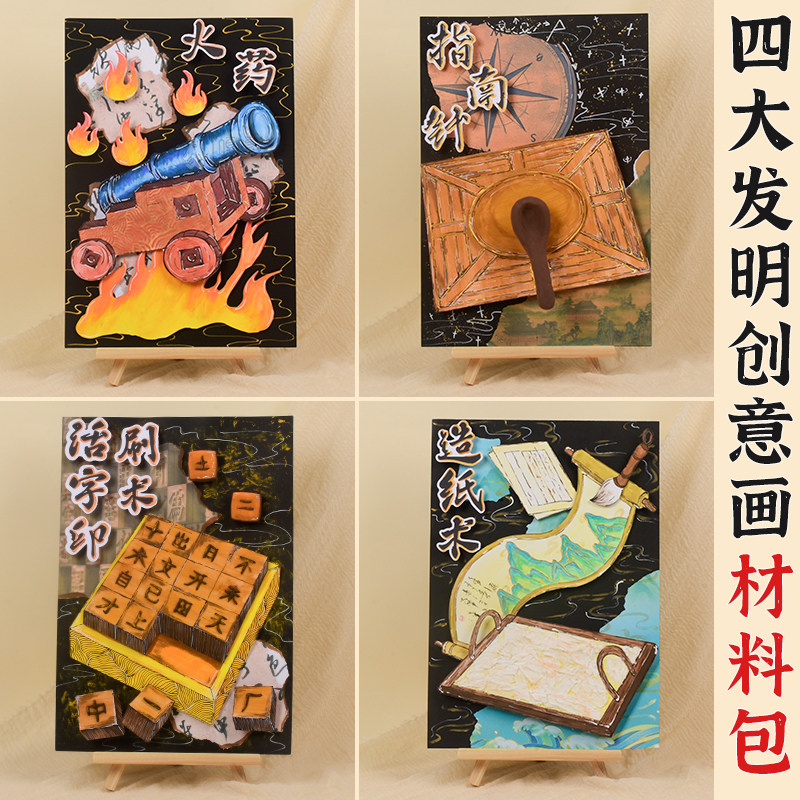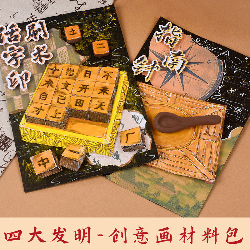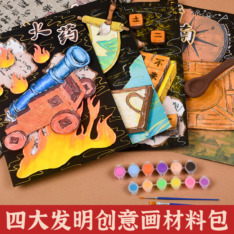 📚 四大发明手工diy创意画儿童制作材料包幼儿园绘画画涂鸦美术课程