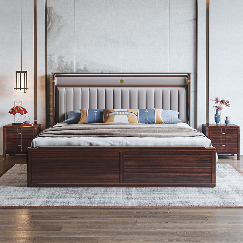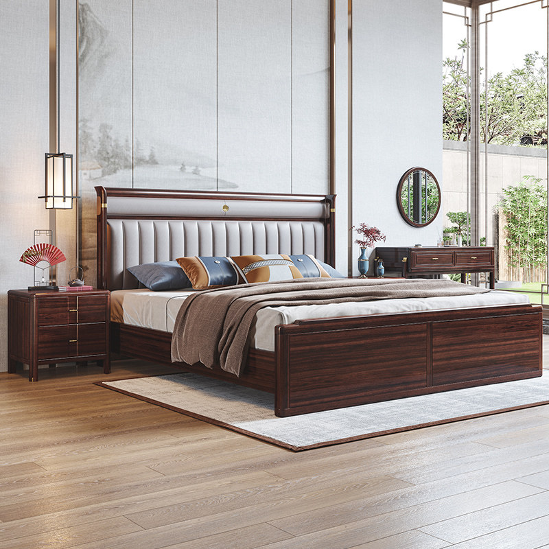 📚 粤礼新中式乌金木实木床轻奢简约主卧软靠双人床YLH8301080
