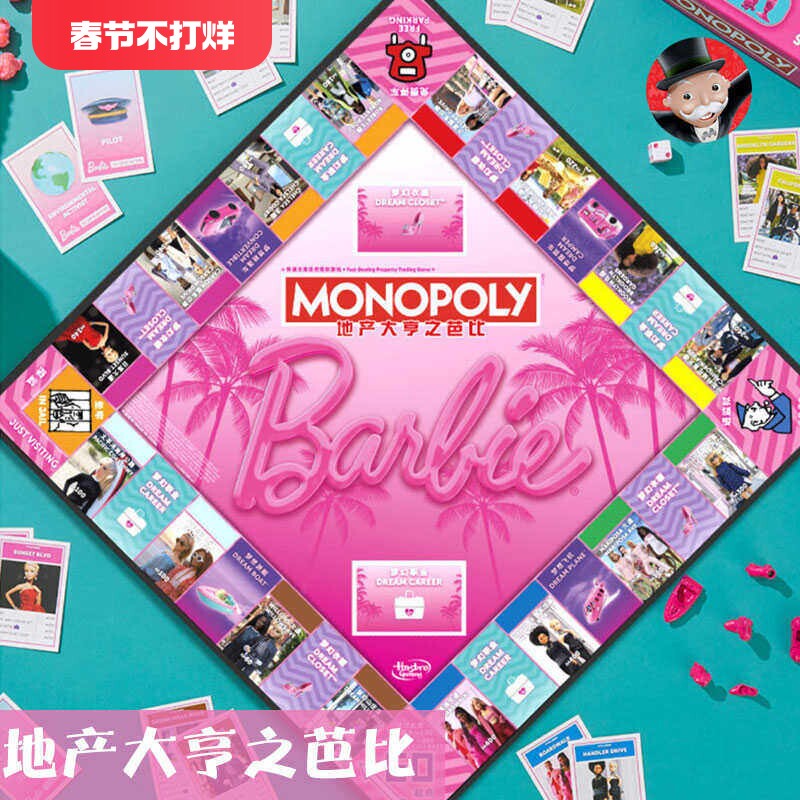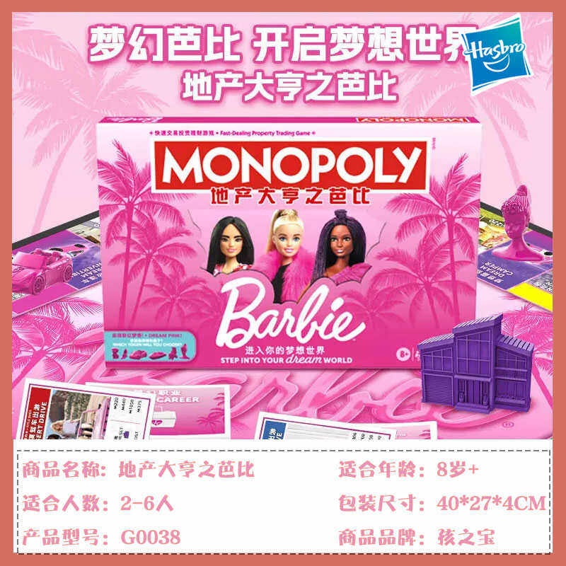 📚 孩之宝MONOPOLY地产大亨之芭比亲子团建桌游玩具儿童强手棋中英文