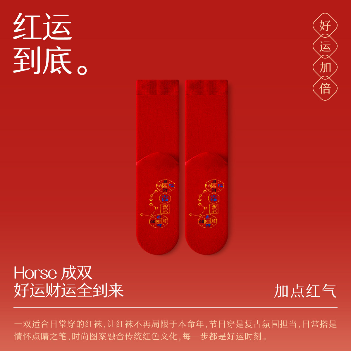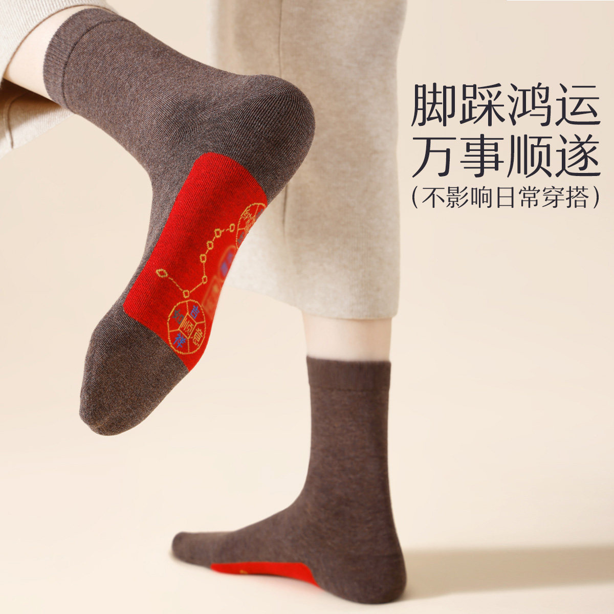 📚 本命年红色袜子男脚踩七星连珠秋冬季中筒袜马年2026新年礼盒棉袜