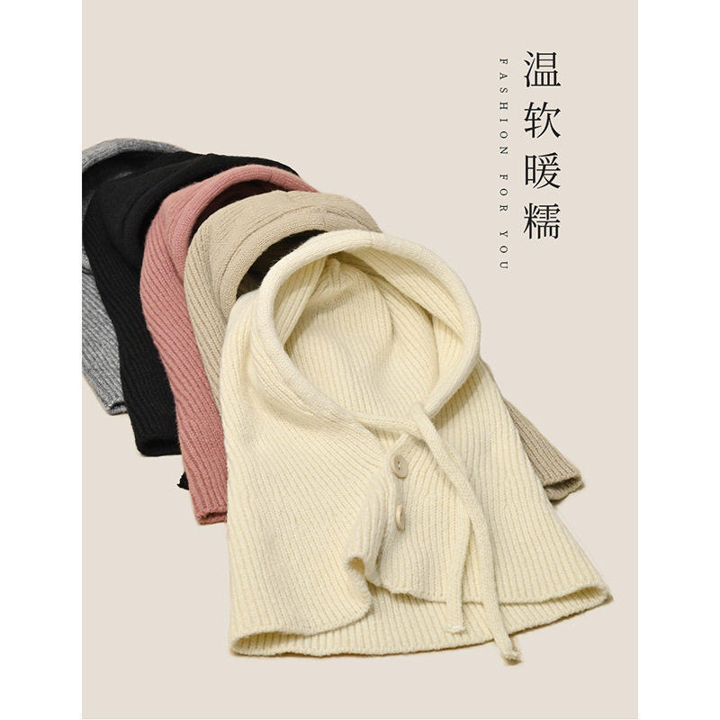 📚 巴拉克拉法帽女秋冬新款帽子围脖一体韩版休闲保暖护耳毛线针织