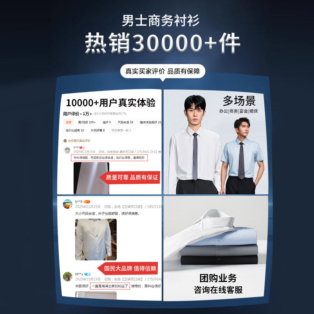 📚 【商务套装】海澜之家长袖衬衫男士白色西装衬衣商务免烫结婚上衣