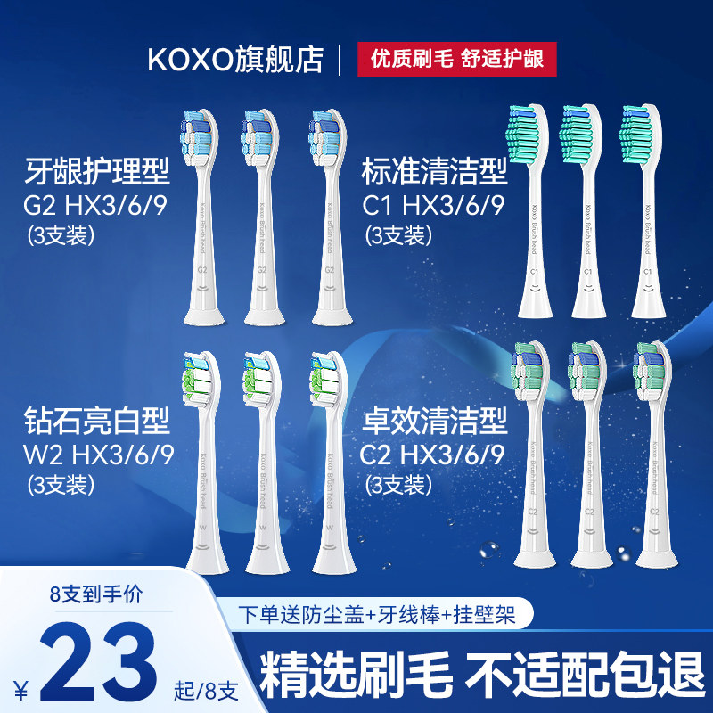 📚 KOXO适配飞利浦电动牙刷头替换通用HX6730/3226/3216/6530/2471