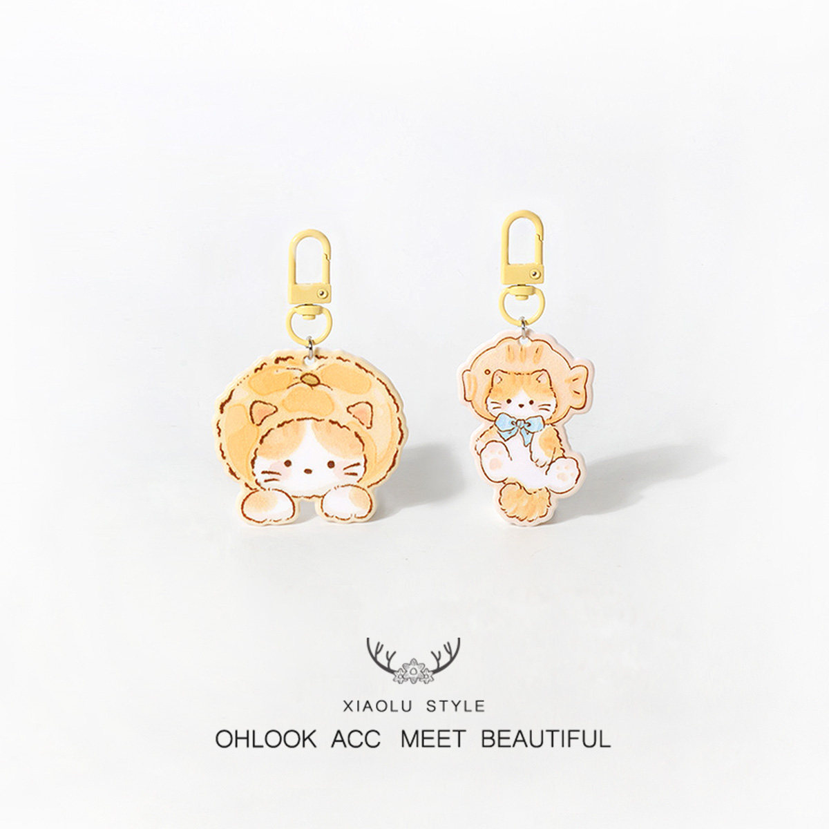 📚 卡通趣味双面橘猫钥匙扣时尚动物包包小挂件学生书包笔袋钥匙链