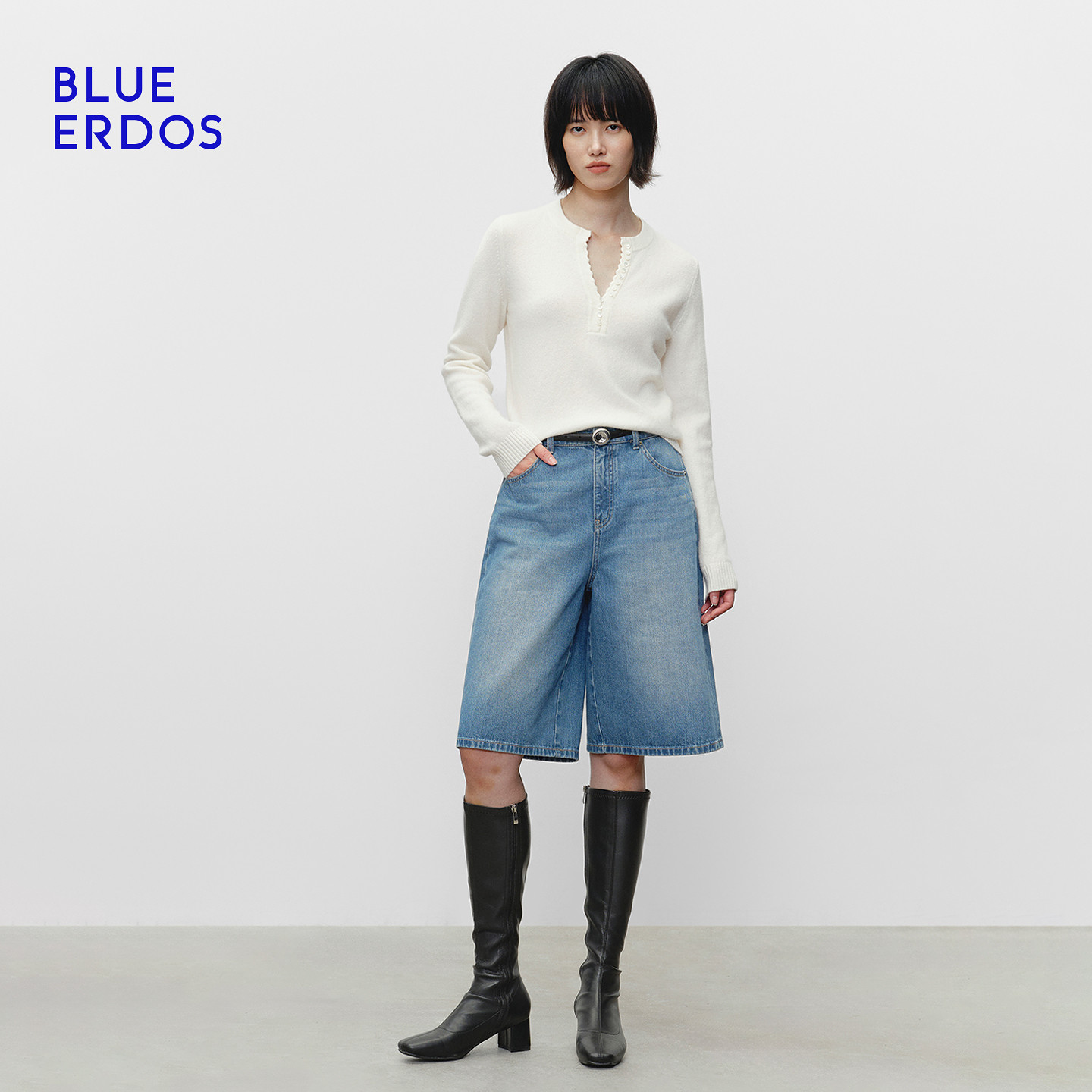 📚 【明星同款】BLUE ERDOS冬新格雷系山羊绒混纺半开圆领羊绒衫女