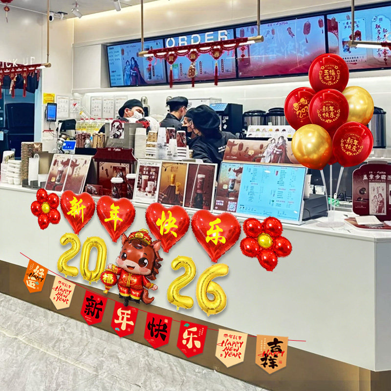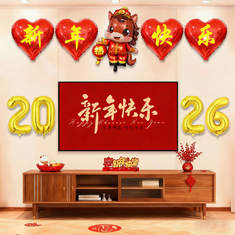📚 2026新年马年春节爱心气球沙发背景墙布置场景装饰商场氛围仪式感