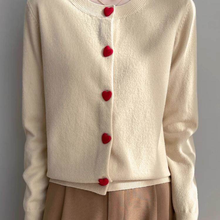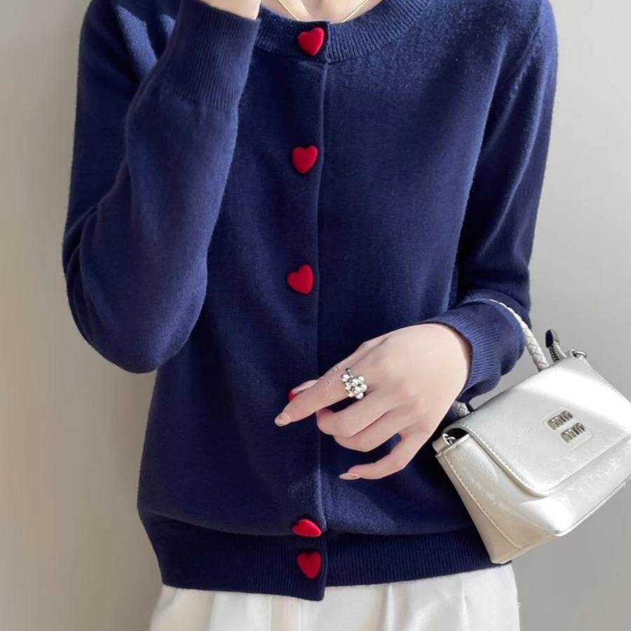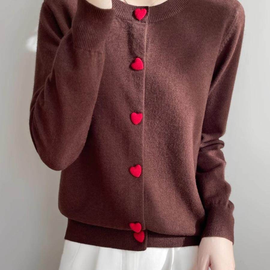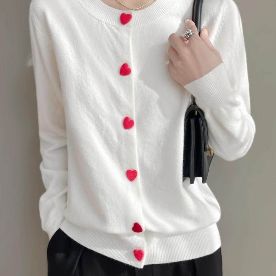 📚 红桃心扣款式粉色圆领针织开衫女外穿2025春季新款毛衣打底上衣韩