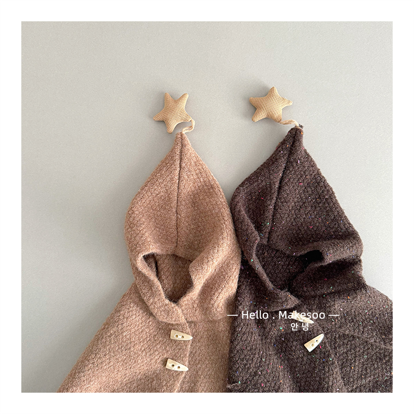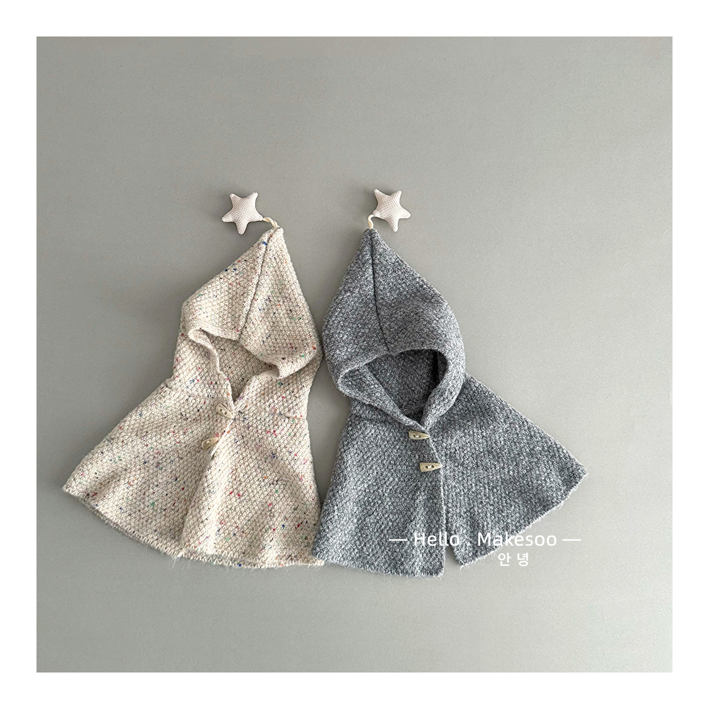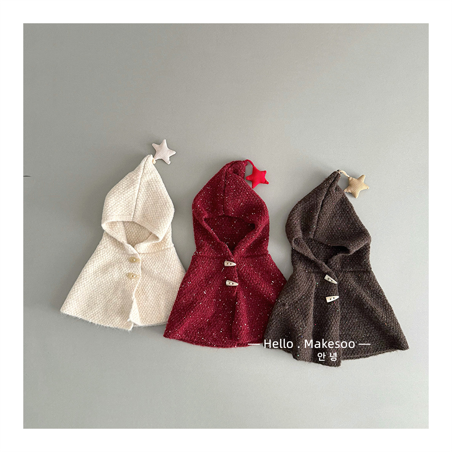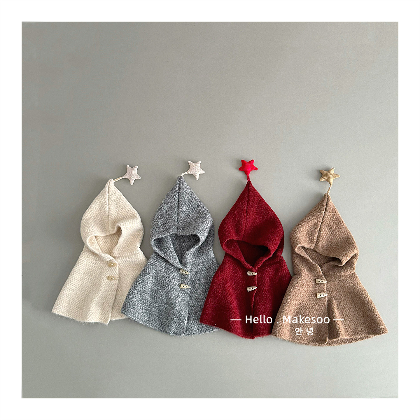📚 宝宝斗篷冬季连帽披肩斗篷针织保暖防风女童男宝可爱星星围巾帽子