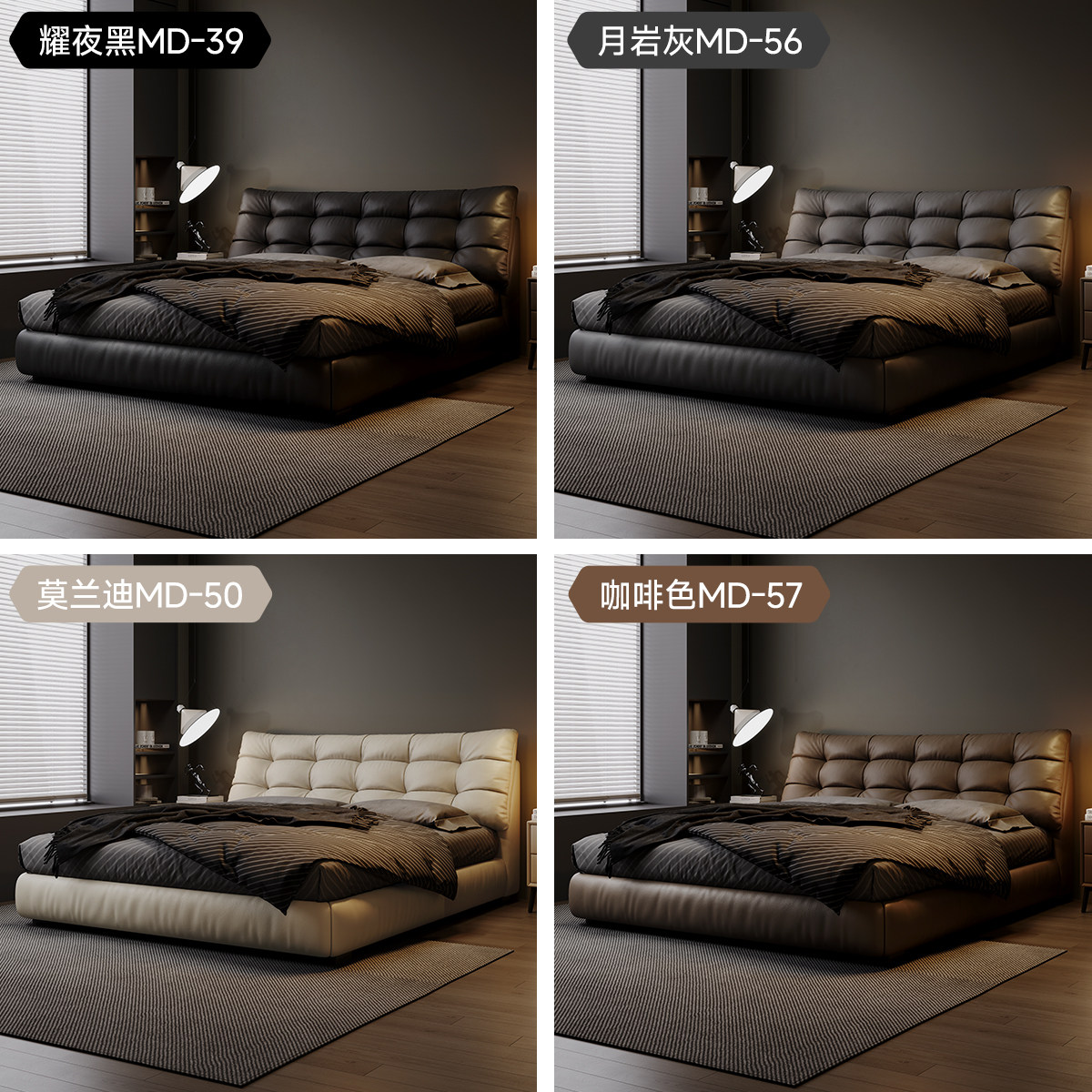 📚 政府补贴法莎蒂主卧黑色真皮床储物高箱结婚床双人床1.8米软包床