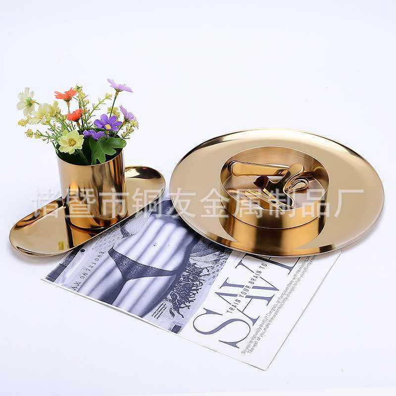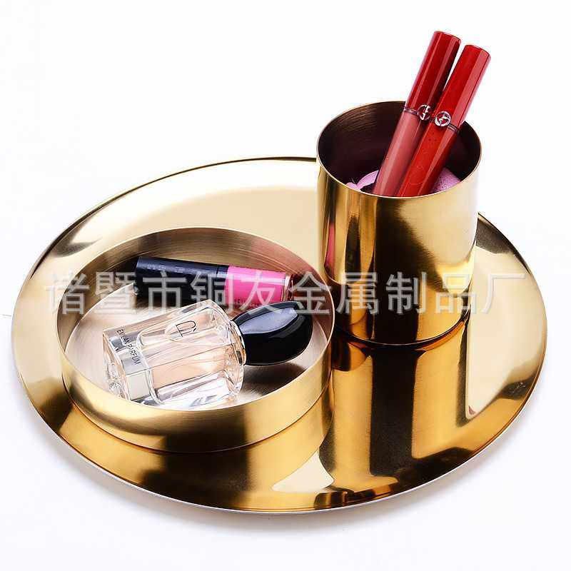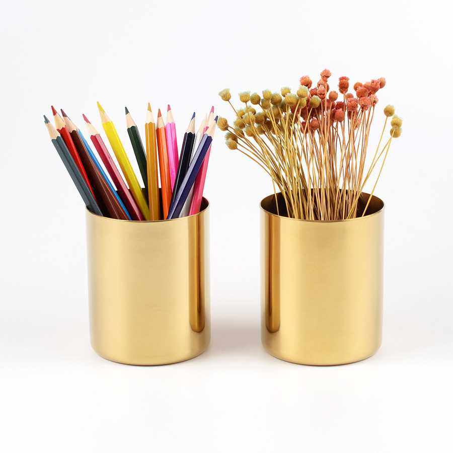 📚 金色花瓶黄铜色圆形笔筒金属插花器收纳杯家用办公室摆件烟灰缸