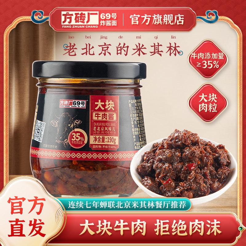 📚 方砖厂69号大块牛肉酱辣椒酱拌饭酱拌面下饭酱火锅香辣调料下饭菜