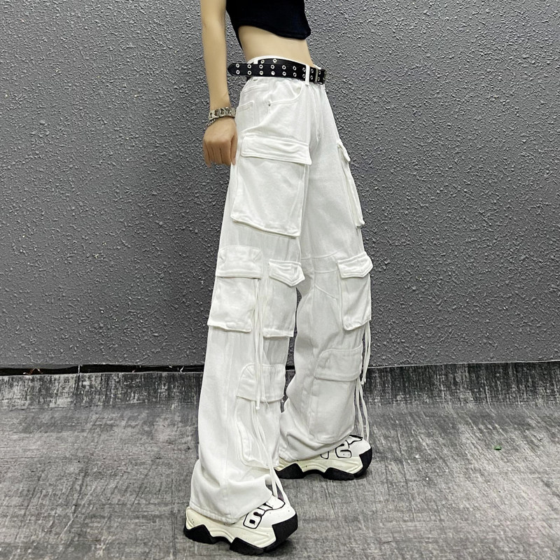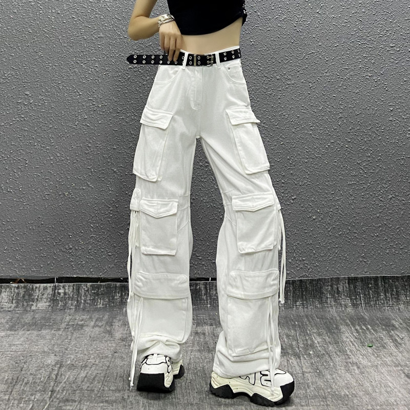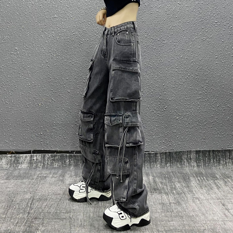 📚 帅气多口袋休闲牛仔工装裤女春新款高腰宽松显瘦百搭直筒阔腿裤子