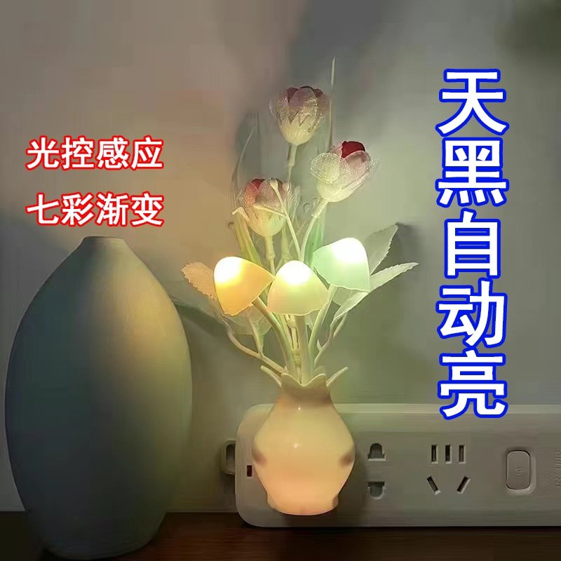 📚 光控小夜灯七彩渐变led节能光感应婴儿喂奶卧室床头睡眠夜用夜灯