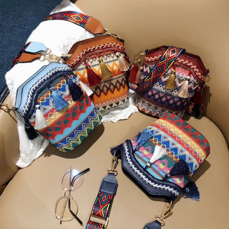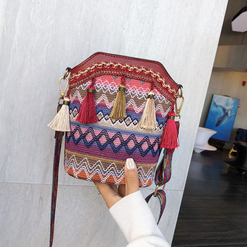 📚 广西壮锦花纹壮族编织布包 流苏编织单肩包水桶斜挎包民族礼品包