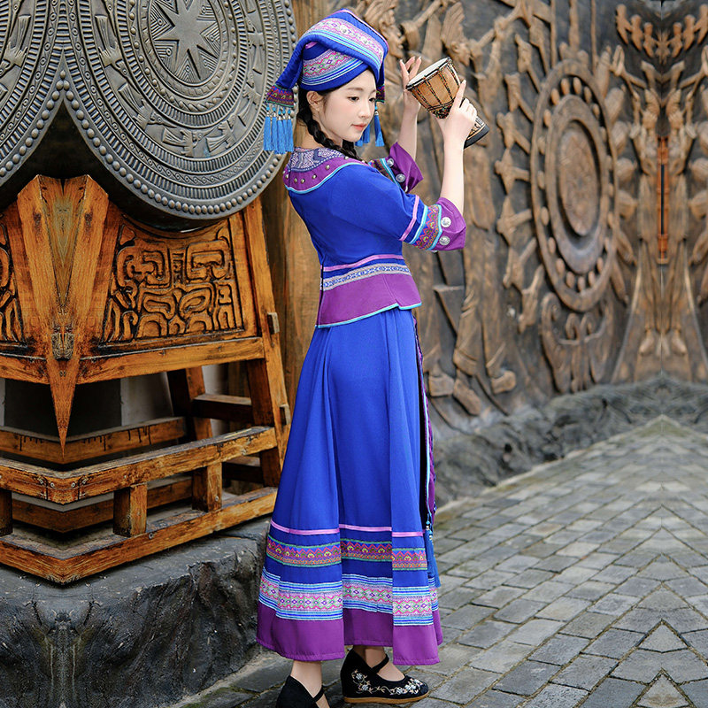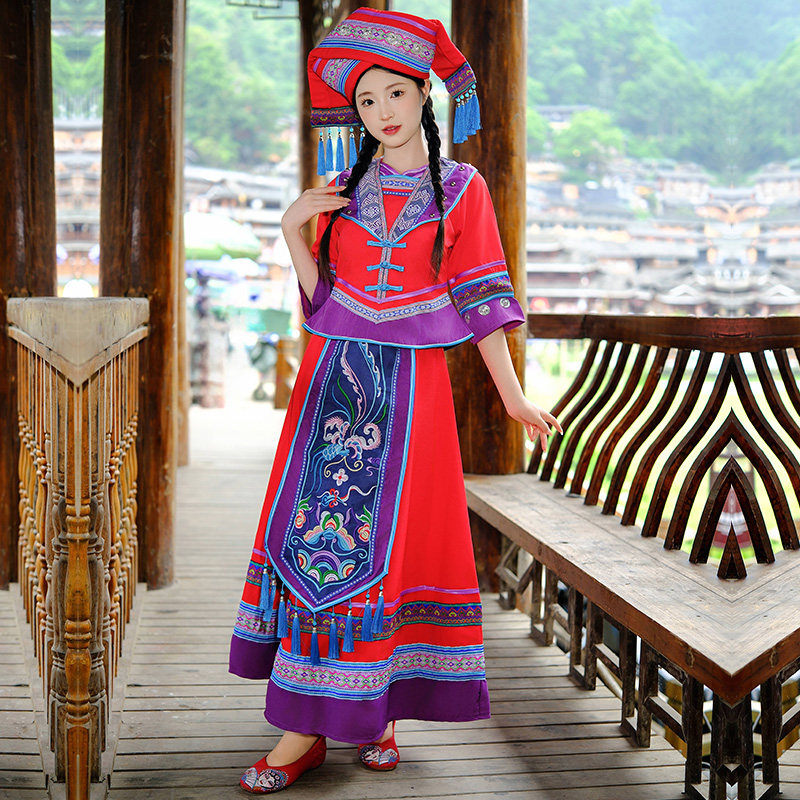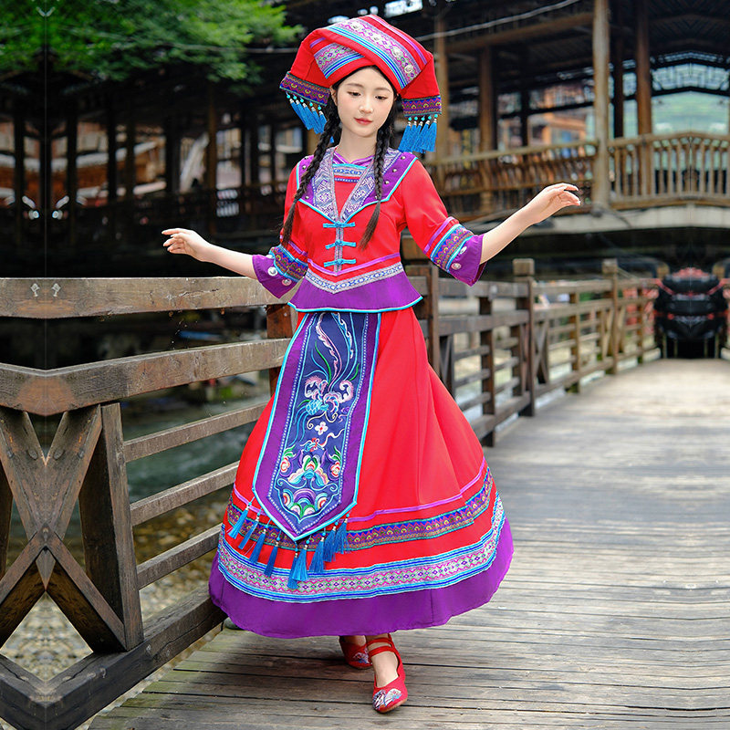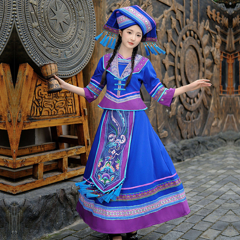 📚 新款广西壮族服装成人女三月三少数民族演出服饰壮锦刺绣盛装长裙