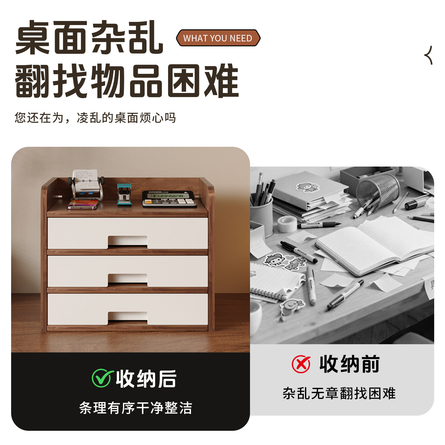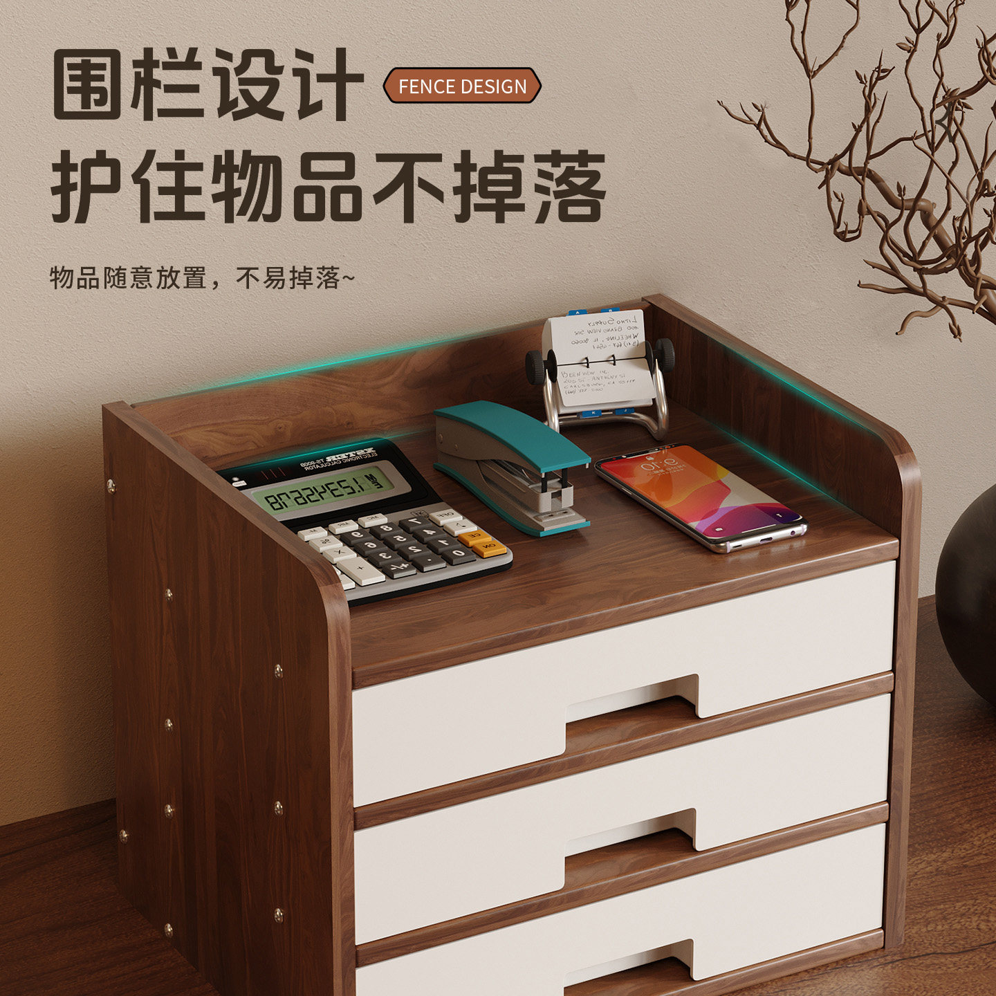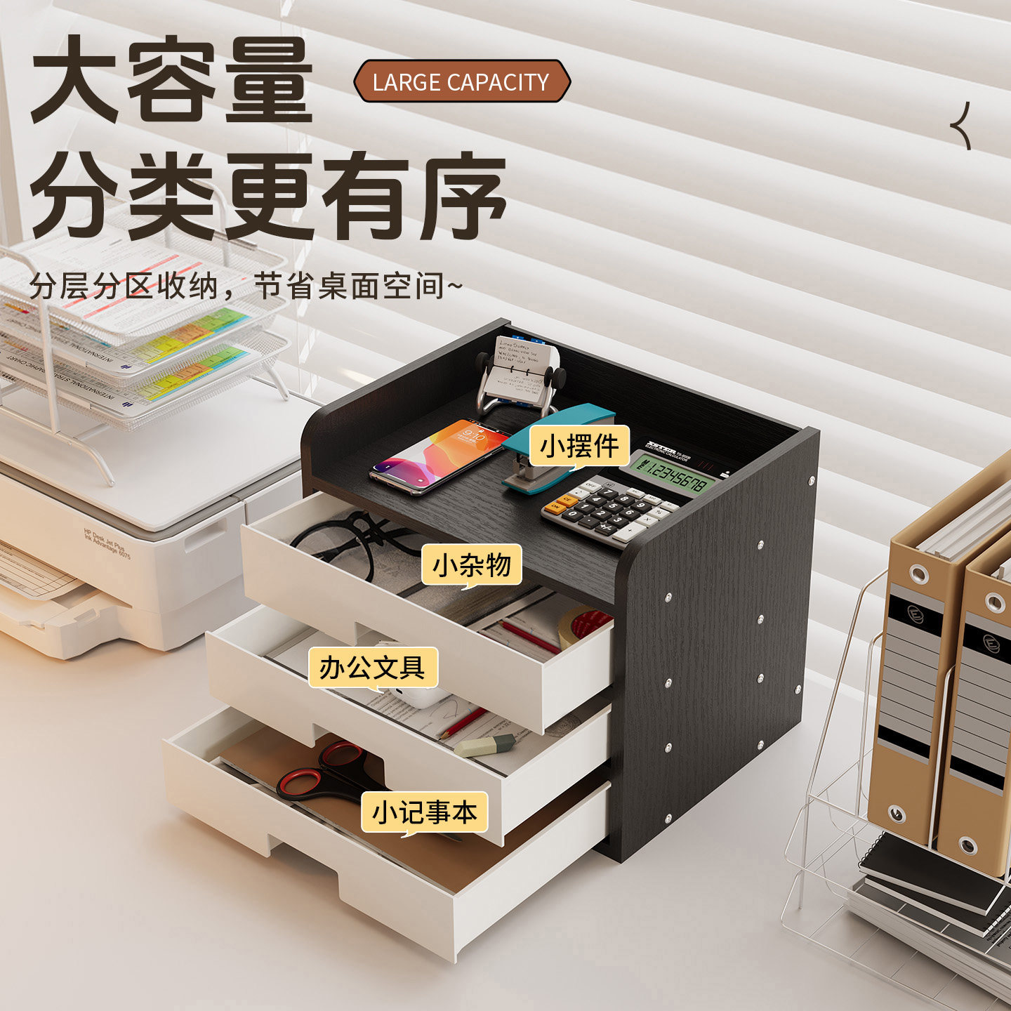 📚 桌面文件收纳盒木质带抽屉多层办公室桌上工位好物文件柜置物架